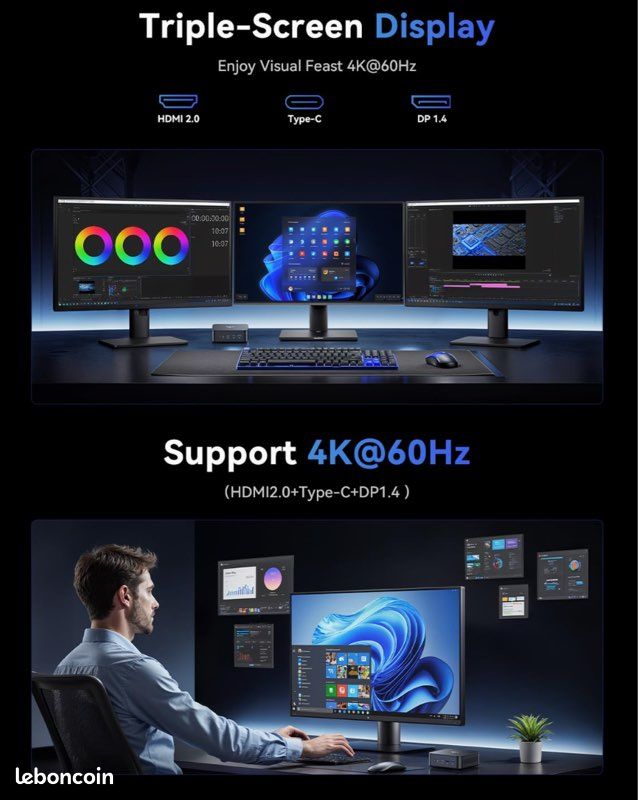 E3B Mini PC AMD Ryzen 7 5825U(Bis zu 4,5GHz) 16GB DDR4 512GB SSD mit Radeon RX Vega 8 Graphics Micro Desktop Computer Für Büro/Heimkino/Meeting/Business/Trip |WiFi 6|BT 5.2|USB3.2 Tour Pc BOSGAME E2 Mini PC Ryzen 5 3550H (máx. 3,7 GHz) DDR4 De Doble Canal, 16 Tours Pc Il NiPoGi Essenx E3 Mini PC rappresenta una scelta interessante per chi cerca un computer compatto ma potente. Grazie al processore AMD Ryzen 5 3500U, questo mini PC promette prestazioni elevate per le più svariate attività, dall´uso ufficio al multimedia Avec 1 port HDMI 2.1, 1 port DP 1.4 et 1 port USB-C, il prend en charge jusqu'à 3 écrans, vous permettant ainsi de gérer facilement plusieurs tâches simultanément, de travailler efficacement et de vous concentrer sur votre travail