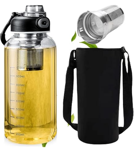 Accessoire Bien-être Nomade Gourde Isotherme 1l LOOFORE Bouteille D'eau En Verre 750 Ml | Verre Borosilicate | Housse Néoprène | Sans BPA | Lave-vaissable Bouteille écologique Verre Borosilicate Isotherme Gourde infuseur avec joint silicone amovible, zones moisissures. T&N Bouteille en verre de 1 litre - Gourde en verre 1l avec housse en... Lot de 2 bouteilles en verre de 1 litre avec couvercle, bouteille d'eau en verre, gourde avec bec verseur en silicone, bouteilles en verre avec joints hermétiques à remplir Son couvercle anti-fuite et sa housse néoprène protègent des chocs. Son design élégant et son infuseur thé bouteille en font un cadeau idéal. FCSDETAIL Sports Bouteille d'eau en Verre Borosilicate, Gourde en Verre Entretien Facile: La bouteille en verre 1L se nettoie au lave-vaisselle (sans couvercle). Ce modèle premium combine un design moderne avec des matériaux de qualité : Corps en verre borosilicate (résistant aux chocs thermiques) Capacité généreuse de 1000ml (25., 5cm de hauteur) 🍵 Fonctionnalités clés : Système 2-en-1 : La gourde infuseur permet de séparer facilement les feuilles de thé de l'eau Bouchon anti-fuite avec joint en silicone alimentaire Pratique : Bec verseur intégré pour une utilisation nomade Écologique : Alternative zéro déchet aux gobelets jetables 💎 Pourquoi choisir cette bouteille en verre 1L ? ✔ Santé : Verre neutre qui ne retient pas les odeurs ✔ Polyvalente : Idéale pour thés, infusions, eaux fruitées ✔ Design épuré : Finition noire sobre et intemporelle ✔ Accessoire inclus : Étui de protection anti-chocs 📦 Contenu : 1 x bouteille en verre 1L avec infuseur 1 x étui de transport L'infuseur thé bouteille en acier inox 304 garantit une infusion saine sans goût métallique. Design Fonctionnel: La bouteille en verre 1L combine un bec verseur ergonomique et un infuseur thé bouteille amovible. Gourde infuseur 100% sans BPA, idéale pour boissons chaudes/froides Idéale pour thés, fruits ou cold brew. Séparation Thé/Eau Parfaite: Grâce à son filtre intégré, la bouteille en verre 1L permet une infusion contrôlée. Matériau Premium & Sécurité: Cette bouteille en verre 1L en borosilicate résiste aux chocs thermiques (-20°C à 150°C).