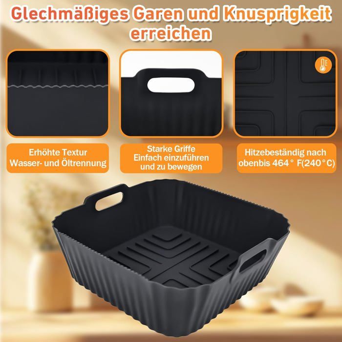 Fryers à air compatible] - Cette doublure de friteuse à air en silicone est une double doublure 2 en 1 et tout dans 1 doublure. Tout dans 1 liner a laissé cuire de grandes parties de nourriture. Conçu pour Ninja Air Fryer Max Pro 6.2L AF180EU 140EU, COSORI TURBOZE 6L et COSORI CP158-AF 5.5L [INSERTS EN SILICONE POUR FRITEUSES À AIR CHAUD] - Savourez de délicieux repas sans vous soucier des résidus alimentaires ou des accumulations de graisse, tout en préservant l'intérieur de votre friteuse à air chaud. Plat Air Fryer Philips 2Piu00e8ces Moule Silicone Air Fryer For NINJA Air Fryer Max Pro, 6.2L AF180EU, Ru00e9utilisable Ninja Airfryer Accessoires Plat Silicone For 6.2L AF180 4,7L AF140EU Philips HD9270 Friteuse Sans [ACCESSOIRES POUR FRITEUSE À AIR CHAUD] - Les moules en silicone pour la friteuse à air Ninja sont spécialement conçus pour le Ninja Air Fryer AF180EU (6,2 l) et le Ninja AF140EU (4,7 l). [ACCESSOIRE RÉUTILISABLE POUR FRITEUSES À AIR CHAUD] - Les inserts en silicone pour les friteuses peuvent être facilement nettoyés à la main ou au lave-vaisselle et sont adaptés à une utilisation prolongée. Le silicone flexible facilite le nettoyage. oule Air Fryer , 2 Paquet Accessoire pour Ninja Foodi AF400EU AF300EU 9.5L, oule Silicone pour... Silikonform Heißluftfritteuse Zubehör für Ninja Heißluftfritteuse Max Pro 6,2 L AF180EU Compatible aussi avec le Ninja Speedi ON400UK (5,7 l), COSORI (4,7 l/5,5 l/6,4 l), Tefal (6,5 l) et Instant Vortex (5,7 l). [MATÉRIAU DES ACCESSOIRES DE FRITEUSE] - Fabriqué en silicone de qualité alimentaire, notre accessoire pour le Ninja Air Fryer AF180 est robuste et polyvalent, adapté à diverses utilisations. Excellent accessoire en silicone pour la friteuse à air Ninja.