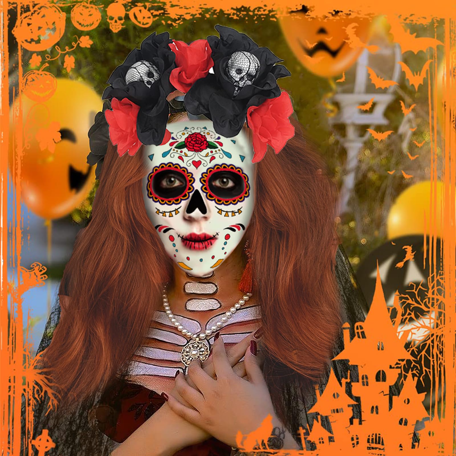 Avertissement De Sûreté Tenir à l'écart du feu ouvert et des sources de chaleur directes Serre-tête d'Halloween Jour des morts, bandeau de cheveux et voile, tatouage pour le visage Dia de Los Muertos Serre-tête noir rouge fleurs couronnes tête de mort pour Halloween, carnaval, fête Description du produit Caractéristiques : Nom du produit : accessoire de costume dia de los muertos Matière : polyester, PVC Taille : taille unique adaptée à la plupart des gens., Couleur : voir photo. Ensemble inclus : comprend 1 serre-tête Halloween Jour des morts, 2 autocollants de tatouage pour le visage d'Halloween, 1 autocollant pour le visage scintillant et 1 collier de rose noir - Combinaison idéale pour un look impressionnant. Tatouage facial d'Halloween : les tatouages temporaires pour le visage de Día de los Muertos vous rendent mystérieux et charmant le jour des morts, tout en les retirant facilement sans laisser de résidus Matériaux de haute qualité : fabriqués en polyester, ces accessoires de costume pour femme sont confortables à porter, tandis que les fleurs sur le serre-tête ressemblent à de vraies roses ; doux, léger et réutilisable. 1 autocollant pour le visage scintillant. Santa Muerte Deguisement Costume Halloween Jour Des Morts - Serre Ce serre-tête d'Halloween Jour des morts est le choix parfait pour votre fête d'Halloween ou votre événement à thème. Contenu de la livraison : 1 serre-tête dia de los muertos 2 tatouages visage d'Halloween., 1 collier rose noir. Soyez prêt à honorer la tradition du jour des morts tout en exprimant votre style personnel ! Avec roses et crâne. Ce serre tête mexicain day of the dead est l’accessoire d’halloween indispensable pour compléter votre déguisement de mexicaine pour célébrer le jour des morts Costume Mexicain Cosplay Femme Deguisement Dias De Los Muertos GAROMIA Jour Des Morts Serre Accessoire Fête Thème Avec ces éléments de costume élégants et mystérieux, vous attirerez tous les regards à chaque fête.
