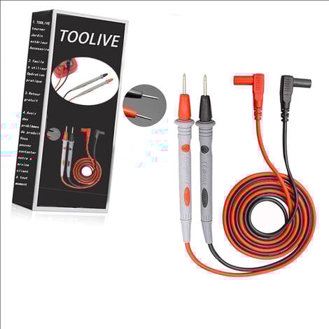 Fils de multimètre - FDIT - Sondes de test - 1000 V - 10 A - PVC et Accessoire Multimètre Numérique Cable Multimetre PT1005 - Câbles De Test Multimètre (1000V/20A) Sonde Multimètre 10a 1000v Sondes Multimètre Professionnelles Wide Application Compatibility: Universally designed, these test leads connect easily to digital multimeters, clamp meters, and benchtop testers. They provide enhanced protection in various environments, ensuring safety for electricians, engineers, and hobbyists working with digital multimeters, clamp meters, or benchtop instruments Gold-Plated Fine Probes: The ultra-fine gold-plated tips allow accurate contact with small solder joints on high-density circuit boards. Câbles de Test pour Multimètre, 1000 V/20A Sondes de Touche Multimètre Kit de Cordons de Test en Silicone Souple Compatible avec Multimètres Numériques & Pince Amperemétrique pour Électricien This ensures excellent conductivity, corrosion resistance, and stable signal transfer, resulting in faster and more precise measurements for electronic repairs and delicate diagnostic tasks Câbles de sondes de test Kit de câbles de test pour multimètre en... Flexible Heat-Resistant Silicone Cable: The 1., 2m silicone cable remains soft and tangle-free, even in extreme temperatures, offering comfort during extended use. Premium Materials & Durability: Constructed with double-layer insulated PVC and flexible PA material, the leads combine flexibility with toughness.