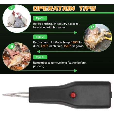 Machine à Déplumer Automatique pour Poulets-Dindons 64x64x95 cm Les ramasseurs électriques rapides de poulet ne retiennent pas la viande de volaille et garantissent ainsi l'intégrité du corps de la volaille. Machine à Plumer électrique Olibelle Machine Plumeuse Electrique Plumage Mouvement Rotatif Plumeuse Pour Volailles Et Oiseaux Machine de plumage de volaille électrique à main, machine de plumage de poulet, pour oiseaux, dinde, facile à utiliser Caractéristiques : La tête conique spécialement conçue peut rapidement éliminer tous les cheveux plumés, y compris les cheveux longs, courts, épais et fins. Contenu de la livraison : 1 plumeur électrique. Merci de ne commander que si vous acceptez cette marge d'erreur. Abreuvoir automatique pour poules, kit avec foret de 9 mm, mangeoire pour poules, canards, oies... Distributeurs De Nourriture Volailles Machine à Plumer Les Poulets Ses designs ajustés permettent un ressort plus rapide et plus complet. Spécification : Matériaux : Couleur : noir., Longueur : environ 28 cm. La tête de cône en acier inoxydable a une texture profonde et droite pour améliorer les frictions et assure un plumage efficace et complet.