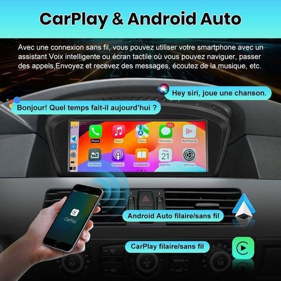 Android Auto – accédez à votre musique, GPS et messages en un seul geste. AWESAFE Autoradio pour BMW Série 5 Série 3 E60, E61,E90, E91...]Écran Tactile HD de 8.8 Pouces de haute qualité (La résolution 1280*480), compatible avec Série 5, E60, E61, E63, E64, Série 3 E90, E91, E92, Prend en charged'origine CCC Système (2003-2008 Appels clairs en Bluetooth & musique sans perte – une connexion libre et stable à tout moment. CarPlay & Android Auto sans fil|Conduite sécurisée: Connexion sans fil ou filaire pour accéder facilement à la navigation, la musique, les appels et les messages. Microphone HD antibruit intégré pour des conversations nettes, transmission audio sans perte pour une musique de qualité. écran Tactile 8.9 Pouces Autoradio GPS BMW Série 5, 3 Et 7 Écran Tactile, Bluetooth, Carplay Autoradio BMW E90 E60 Interface CCC d’origine, installation sans découpe ni adaptateur supplémentaire, prend en charge les commandes au volant et toutes les fonctions d’origine. Système Linux fiable|Démarrage rapide: Contrairement aux autoradios Android universels, le système Linux est léger et optimisé: démarrage en quelques secondes, fonctionnement stable, sans écran figé ni plantage. Bluetooth intégré|Appels et musique clairs: Fonction mains libres avec synchronisation du répertoire téléphonique. Écran tactile HD 8,9’’|Expérience fluide: Écran IPS offrant une image nette et lumineuse, parfaitement lisible même en plein soleil. Erisin 8.8" 8-Cœurs Autoradio Android 12 GPS Stéréo pour BMW Série 3 Contrôle tactile réactif et fluide. Autoradio Linux 8,8 pouces pour BMW Série 5 E60 E90 avec système CCC : L'autoradio est équipé du système d'exploitation Linux. Profitez d'applications de navigation plus rapides, plus fluides et plus intelligentes