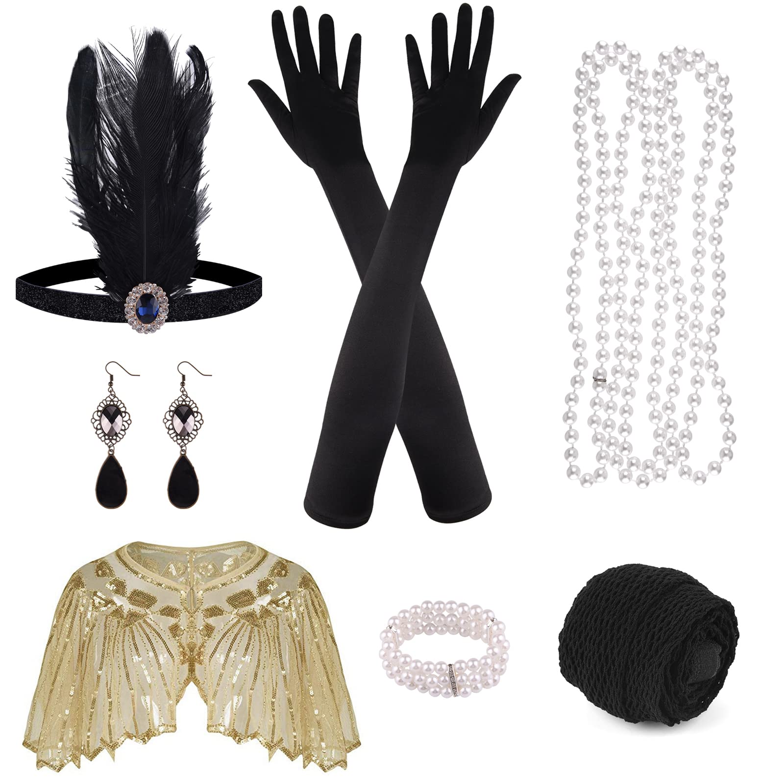 Détails de la chaîne : ce collier de perles artificielles classique rétro est élégant et magnifique, a une longueur de 183 cm et peut être enroulé deux fois autour du cou pour correspondre parfaitement à votre tenue dans le style des années 20., Design du bandeau : le bandeau est élastique, confortable à porter et convient à la plupart des gens. Ensemble d'accessoires de style années 20 : cet ensemble d'accessoires comprend une paire de gants longs beiges, une paire de boucles d'oreilles de style rétro, un collier de perles artificielles, un porte-cigarette rétro en plastique et un bandeau rétro. Il donne au look d'une femme dans le style des années 20 un charme élégant, intemporel et classique. Costume Gatsby Femme Coiffe Plumes Gants Satin Accessoires Great Gatsby Années 1920 - Lot De 6 Pièces Pour Fête Et Cosplay Coiffe Plumes Soirée Années 20 Idée cadeau : cet ensemble d'accessoires classiques dans le style des années 20 est le choix idéal pour les femmes qui aiment le style rétro. AYSYR Lot de 7 accessoires pour femme - Costume des années 20 - Accessoire Gatsby pour fête garçonne - Accessoires des années 1920 - Avec bandeau, boucles d'oreilles, collier, gants, accessoires de Déguisement Rétro Femme CHRI Lot De 7 Costumes Pour Femme Des Années 20 - Accessoires Grand Gatsby 1920 Gatsby Femme Ces accessoires Gatsby des années 1920 sont la décoration parfaite pour tous les types de bals et de fêtes. Cet ensemble classique des années 1920 est un excellent cadeau pour une femme, une mère ou une petite amie