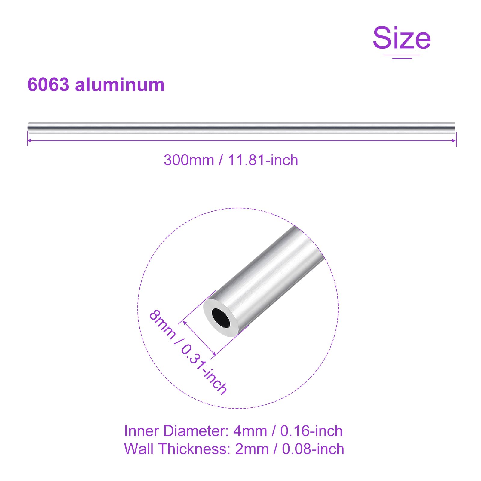 CARACTÉRISTIQUES : Notre tube en métal industriel est fabriqué en aluminium 6063, qui est solide, durable, résistant à la corrosion, léger et difficile à déformer. APPLICATION : Les tubes en aluminium peuvent être utilisés dans de nombreuses applications, notamment le support structurel, la fabrication de meubles, les pièces de machines, les projets DIY, et plus encore. TAILLE : Diamètre intérieur de 4mm / 0,16 pouce ; Diamètre extérieur de 8mm / 0,31 pouce ; Épaisseur de paroi de 2mm / 0,08 pouce ; Longueur totale de 300mm / 11,81 pouces Tube en aluminium 6063 VOCOSTE 3mm Diamètre intérieur 4mm Diamètre Diamètre 8mm Ext 4mm Int DMiotech Lot De 2 (32mm OD X 29mm ID) Tube Rond En Aluminium 6063 De 300mm Lot 3 Pièces Aluminium Léger Et Résistant REMARQUE : Lors du médication du tube, veuillez utiliser des outils professionnels et faire preuve de prudence. Ils conviennent parfaitement aux applications nécessitant résistance et durabilité.