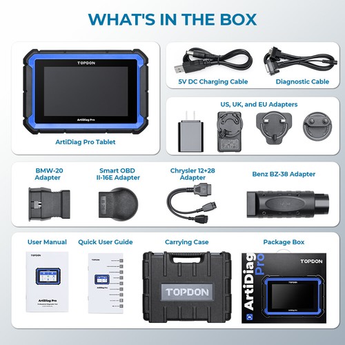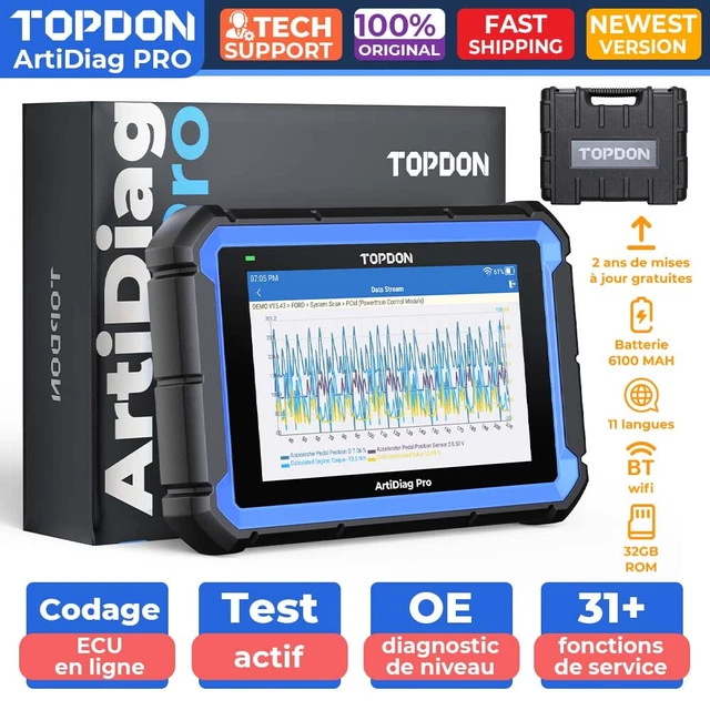 ACCÉLÉREZ LE PROCESSUS DE DIAGNOSTIC AVEC AUTOVIN AutoVIN identifie automatiquement les informations du véhicule telles que la marque, le modèle. Écrit l'historique de service et ajuste le temps de retard du rétroviseur rabattable pour BMW, Générez et partagez des rapports, enregistrez et tracez des flux de données, et utilisez les fonctions de feedback pour obtenir une assistance technique. Accédez à votre productivité maximale avec plus de 31 services de maintenance 31 fonctions de service avancées garantissent que votre voiture est prête à rouler et que vous restez en sécurité sur la route. Confirmer la compatibilité avant l'achat. éclairage, ABS), déverrouillez des fonctions cachées et personnalisez les paramètres comme les rappels de ceinture et le verrouillage à distance. Il localise avec précision les défauts, vérifie les réparations en temps réel et réduit les suppositions. Les commandes bidirectionnelles peuvent envoyer des ordres à l'ECU et contrôler les actionneurs pour qu'ils effectuent les actions correspondantes afin d'aider à identifier les problèmes avec précision. Inclut 10 langues, des mises à jour gratuites pendant 2 ans et un service client fiable. Ce scanner peut également aider à faire correspondre et coder l'ECU nouvellement remplacé, y compris le module d'éclairage et le module ABS. MISE À JOUR EN UN CLIC AVEC WIFI Un clic met à jour le logiciel via WiFi pour obtenir les dernières fonctions. 【Diagnostic Complet des Systèmes Niveau OE】 Effectuez des diagnostics complets sur le moteur, la transmission, les airbags, l'ABS, l'ESP, le TPMS et plus pour plus de 72 marques., L'ArtiDiag Pro 1., 0 prend en charge les 10 modes de test OBDII, incluant la lecture/effacement des codes défaut, le flux de données en direct et la consultation des infos ECU. Compatible avec les grandes marques comme VW, GM, BMW, Porsche et Mercedes-Benz. 【Matériel Professionnel & Support】 Conçu pour l'efficacité : l'ArtiDiag Pro 1., 0 dispose d'un CPU Quad-Core 2GHz, 2GB RAM / 32GB ROM et d'une batterie 6100mAh permettant jusqu'à 14 heures d'utilisation continue. Ce scanner de diagnostic tout-en-un permet aux ateliers automobiles de prendre en charge davantage de tâches grâce à l'accès à la couverture automobile de plus de 70 marques ; les bricoleurs peuvent affiner les problèmes spécifiques de leur voiture avant de l'amener à l'atelier de réparation ; les ateliers professionnels peuvent l'utiliser comme un scanner complémentaire pour les tâches de diagnostic de base. TOPDON ArtiDiag Pro 1.0 Valise Diagnostic Auto, Scanner OBD2, Contrôle Bidirectionnel, Codage de ECU, 31 Services de Maintenance, 2 Ans de Mises à Jour Gratuites Permettre aux utilisateurs d'évaluer les performances avec des données comparatives pour prendre des décisions précises et efficaces. Remplacez et recodez les modules (ex. Compatible avec BMW, BENZ, JAGUAR, CHRYSLER, FIAT, GM, FORD, HONDA et plus. Par exemple, les utilisateurs peuvent tester l'injecteur pour vérifier s'il fonctionne correctement lorsqu'ils ne peuvent pas démarrer le moteur de la voiture, ce qui permet d'économiser beaucoup d'efforts et de tests. 31 Servicefunktionen: Das Diagnosegerät auto ArtiDiag Pro von Topdon erfüllt mit 31 Wartungsservices, inklusive Öl-Reset, elektrische Parkbremse-Reset, Lenkwinkelsensor-Reset und Batteriemanagementsystem-Reset. Es unterstützt beliebte Fahrzeuge wie VW, GM, BMW, Porsche, Mercedes-Benz und viele mehr CONTRÔLE BIDIRECTIONNEL - TROUVER ET CORRIGER Avec des capacités bidirectionnelles, l'ArtiDiag Pro 1., 0 peut effectuer des tests sur des actionneurs individuels pour savoir si l'actionneur fonctionne comme il se doit, aidant les utilisateurs à localiser et à résoudre les problèmes du véhicule plus facilement et plus rapidement. Durée de vie de la batterie plus longue et fonctionnement plus fluide : CPU 4 cœurs 2Ghz, 2G RAM, Android 7., 0, 6100mAh d'autonomie. Écrit VIN et ECM/PCM de remplacement pour HONDA (ASIE). Diagnostic Complet du Système pour 70+ Marques Le scanner ArtiDiag Pro 1., 0 permet à l'utilisateur d'effectuer une analyse complète de tous les systèmes, y compris le moteur, la transmission, l'airbag, l'ABS, l'ESP, le TPMS, l'antidémarrage, la passerelle, la direction, la radio et la climatisation pour plus de 70 marques. Cela inclut le déverrouillage de porte unique, l'affichage de la quantité de carburant, le démarrage automatique du moteur pour Audi ; la fonction de rappel de ceinture de sécurité et l'arrêt du klaxon lors du verrouillage pour les véhicules Chrysler. IMPRIMER DES RAPPORTS DE DIAGNOSTIC & RETOUR D'INFORMATION Générez un rapport de diagnostic et imprimez-le pour fournir des informations aux clients et aux compagnies d'assurance. Rationalisez votre progression de réparation et passez plus de temps à réparer le véhicule et moins de temps à diagnostiquer. Effacement de la mémoire des données de collision et des tests de ratés d'allumage pour Ford ; Diagnostic de tous les systèmes au niveau de l'équipement d'origine pour plonger en profondeur dans les systèmes du véhicule, y compris le moteur, la transmission, l'airbag, l'ABS, l'ESP et le TPMS pour plus de 100 marques. Artidiag Pro Review TOPDON ArtiDiag Pro V2.0 Mid-level Diagnostic Tool 31 Maintenance Services ECU Coding TOPDON ArtiDiag Pro 1.0 【31+ Fonctions de Maintenance & Réinitialisation】 Développez vos capacités de service avec plus de 31 fonctions de maintenance, incluant les réinitialisations d'huile, EPB, BMS et SAS. 10 LANGUES SUPPORTÉES Fonctionne en anglais, français, allemand, espagnol, portugais, russe, japonais, italien, coréen et polonais. Fonctionne sur les lumières, les serrures de porte, le klaxon, les fenêtres, les essuie-glaces, l'EVAP, etc. Topdon Artidiag PRO Profi KFZ OBD2 Diagnosegerät Scanner ALLE SYSTEM