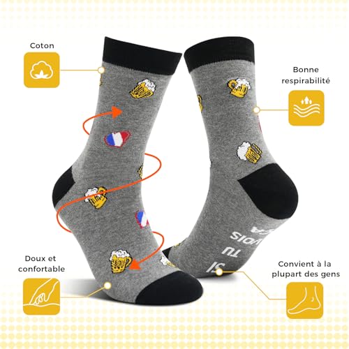 Conçu avec un mélange de matériaux de haute technologie : 85 % de coton biologique, 15 % de polyester de pour une douceur naturelle, une durabilité agréable pour la peau, des points d'usure renforcés pour la durabilité et une élasticité adaptative qui permet de bouger sans serrer et de porter le vêtement sans se fatiguer. Cadeau Parfait – Les chaussettes amusantes sont le cadeau parfait pour vous-même, un amateur de bière, un grand-père, un père, un mari, un fils, un ami, une petite amie et plus encore, idéal pour Noël, les anniversaires, la fête des pères et d’autres occasions spéciales Elles sont très douces, confortables,élastiques et respirantes, et ne boulochent pas facilement. Évite de glisser sans être trop serré et assure un maintien stable sans inconfort. Cadeau Parfait - Les chaussettes amusantes sont le cadeau parfait pour vous-même, un amateur de bière, un grand-père, un père, un mari, un fils, un ami, une petite amie et plus encore, idéal pour Noël, les anniversaires, la fête des pères et d'autres occasions spéciales. Parfaites pour la vie de tous les jours, le sport, les couples, la bière, ou même comme bas de Noël original ! vous n'avez donc pas à vous soucier de la décoloration ou de la déformation. Chaussettes SI TU VOIS CA APPORTE MOI UNE BIERE expédié depuis Les détails uniques vous permettent de vous démarquer ! Ces mots amusants et humoristiques sont imprimés sur la semelle des chaussettes. Les chaussettes à bière peuvent ajouter beaucoup de plaisir et d'originalité à votre tenue quotidienne. Taille universelle & polyvalence : Taille EU 39-46 (hommes/femmes), élastiques pour pieds larges et fins. Parfaites pour la vie de tous les jours, le sport, les couples, la bière, ou même comme bas de Noël original Chaussettes Humoristiques Originales Chaussettes Rigolotes Chiens Et Rayures Chaussettes Taille 39-46 Coton Les chaussettes conviennent à la pointure 43-46 de l'Union européenne.