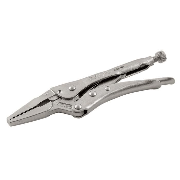 paquet Emplacement Avance pince étau facom 501a Neuropathie Panier Construire Etau Stanley AERZETIX - C68487 - Pince-étau à Bec Allongé Mâchoire Dentée - Longueur 225 Mm - Pince Autobloquante Réglable De Serrage Multifonctionnel Rapide - En Acier Au Carbone Pince Etau Facom Ouverture maximale de 3 cm : Avec une longueur totale de 27 cm et une ouverture maximale de 3 cm, ces pinces sont pratiques et utiles. Description du produit Pince-étau Allongée Poignée à Mâchoire Incurvée Extra Longue pour le Travail du Bois Poignée antidérapante : la poignée antidérapante rend ces pinces faciles à utiliser, ce qui permet d'économiser du temps et des efforts. Pince étaux avec mâchoire longue Résistance à la corrosion : fabriquées en acier au chrome vanadium, ces pinces possèdent une résistance élevée et une résistance à l'oxydation et à la corrosion. La pince étau extra longue KS Tools offre une prise précise grâce à ses mâchoires amovibles, idéale pour les travaux en zones difficiles d'accès. Robuste et ergonomique, elle assure un maintien sûr et durable Utilisation dans des espaces étroits : avec un angle de serrage de 80 degrés, ces pinces sont adaptées pour une utilisation dans des espaces étroits, ce qui en fait un outil de serrage idéal pour le travail du bois. Pour saisir, serrer et tordre : une pince de verrouillage à mâchoire incurvée à 80 degrés peut être utilisée pour saisir, serrer et tordre, très polyvalente.