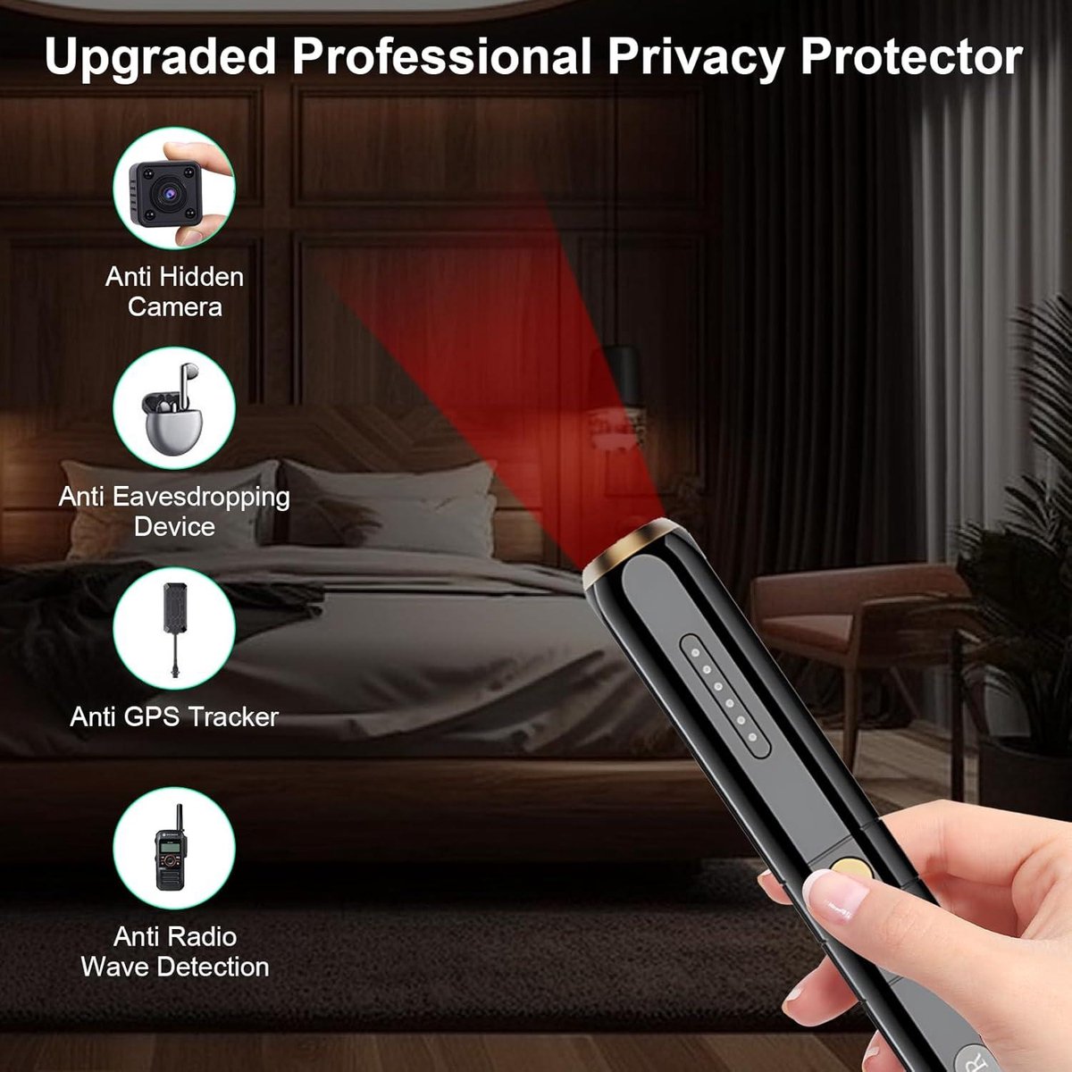 Il offre de puissantes capacités anti-interférences, une détection longue portée, une accumulation de signaux et des algorithmes complets, ainsi qu'une autonomie prolongée. Détecteur Anti Espion - YYV - Caméra Cachée - Sensibilité Réglable - Détection RF - Portable Détecteur Anti Espion YYV pour caméras cachées, avec sensibilité réglable et détection RF. Compact et facile à utiliser, autonomie de 25 heures Sa zone de détection effective peut atteindre 30 mètres carrés. Puce intelligente ultra-sensible : Le détecteur X13 est équipé d'un microprocesseur intégré de nouvelle génération pour un fonctionnement intelligent. Sa batterie rechargeable intégrée, inchangeable et facile à ranger, protège votre vie privée et vos informations professionnelles. Détecteur De Surveillance X13 Portable Détecteur De Caméra Cachée , Micro Espion Détecteur, Detector Bug Détecteur Caméra Cachée Caractéristiques : - Couleur : Noir - Matériau : PC - Dimensions : 13,7 x 6,8 x 3,5 cm Emballage : Détecteur de caméra *1 Sa puce sensible assure une détection précise des signaux et un retour d'alarme rapide. Conception durable et portable : Le détecteur X13 est compact et léger, ce qui le rend facile à utiliser et à transporter. Détecteur de caméras cachées : Ce détecteur de caméras cachées comprend : 1., La détection des signaux RF permet de détecter les appareils d'écoute RF actifs, tels que les caméras émettrices de signaux, les traceurs GPS et les micros audio sans fil., 2., Un détecteur de caméra et d'objectif, utilisant un balayage laser infrarouge, permet d'identifier les caméras sténopé cachées par simple inspection visuelle. abyliee Upgraded Hidden Camera Detector - AI-Powered Anti-Spy Device, GPS Tracker & Bug Detector, Portable RF Signal Scanner for Hotels, Travel, Home & Office (Black Confidentialité et sécurité : Ce produit utilise une technologie de balayage passif, sans fil et infrarouge pour détecter avec précision : les écoutes téléphoniques, les écoutes de conférence, les traceurs GPS, les écoutes de voiture, les caméras sténopé sans fil, les caméras filaires, les sources de rayonnement électronique, etc. Détection longue portée : avec une portée de détection allant jusqu'à 5 mètres, il est facile de vérifier les coins et les endroits hauts, et plus vous vous...