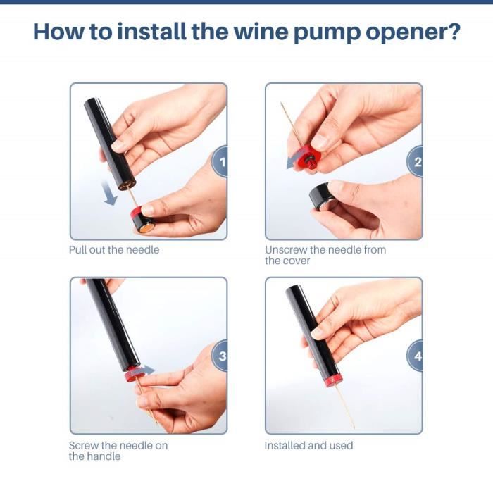 Offrez ce wine opener comme cadeau unique pour vos proches amateurs de vin. Tire Bouchon Pompe à air - Accessoires pour les vins (12921673 Le innovant Elegear tire bouchon pompe à air, avec son ouverture 7S, sa légèreté et son élégance, est le premier choix de tout amateur de vin et de tout sommelier Ce wine opener est parfait pour les amateurs de vin rouge ou blanc qui recherchent un accessoire à la fois pratique et élégant. Contrairement aux anciens modèles, ce wine opener à air comprimé évite tout résidu, préservant la pureté et la qualité du vin. [Technologie à pression d’air améliorée] Ce 7S tire-bouchon à pression d’air de nouvelle génération, également appelé tire bouchon pompe à air, permet d’ouvrir vos bouteilles rapidement et sans effort. Sa conception ergonomique assure une prise en main confortable et stable, même d’une seule main. En tant qu’ouvre bouteille professionnel, il offre une expérience pratique et agréable, soutenue par un service après-vente attentif et fiable. Découvrez le tire bouchon pompe à air nouvelle génération — un tire-bouchon à pression d’air ingénieux qui rend l’ouverture du vin plus rapide, plus élégante et totalement sans effort. Wine Opener Tire Bouchon Pompe à Air Comprimé Tire-Bouchon à Pression D'air 7S Cork Tire Bouchon Gaz élégant En insérant simplement l’aiguille du wine opener dans le bouchon puis en pompant doucement, le bouchon sortira proprement sans se casser. PHOEWON Tire Bouchon, Un Tire-Bouchon à Pression d'air Cork Pops Out... Plus esthétique qu’un ouvre bouteille traditionnel, il devient un accessoire de table haut de gamme pour les dégustations, repas romantiques ou soirées entre amis. Ce tire bouchon a gaz ou tire-bouchon à pression d'air assure une ouverture rapide et propre. Fabriqué en alliage d’aluminium haut de gamme, ce tire bouchon combine robustesse, légèreté et esthétique raffinée. Ce tire bouchon a gaz utilise un système d’air comprimé puissant qui rend l’ouverture fluide, rapide et élégante — idéal pour les amateurs de vin rouge. [Utilisation universelle & service soigné] Ce tire bouchon à air comprimé est compatible avec la plupart des bouteilles de vin à bouchon naturel. [Compact et facile à transporter] Ce tire-bouchon à pression d’air portable est léger, compact et facile à ranger dans un sac ou un tiroir. Ce tire bouchon est à la fois pratique et décoratif. Il suffit d’insérer l’aiguille dans le bouchon et de pomper légèrement : le bouchon sortira naturellement, préservant ainsi la pureté de votre vin.