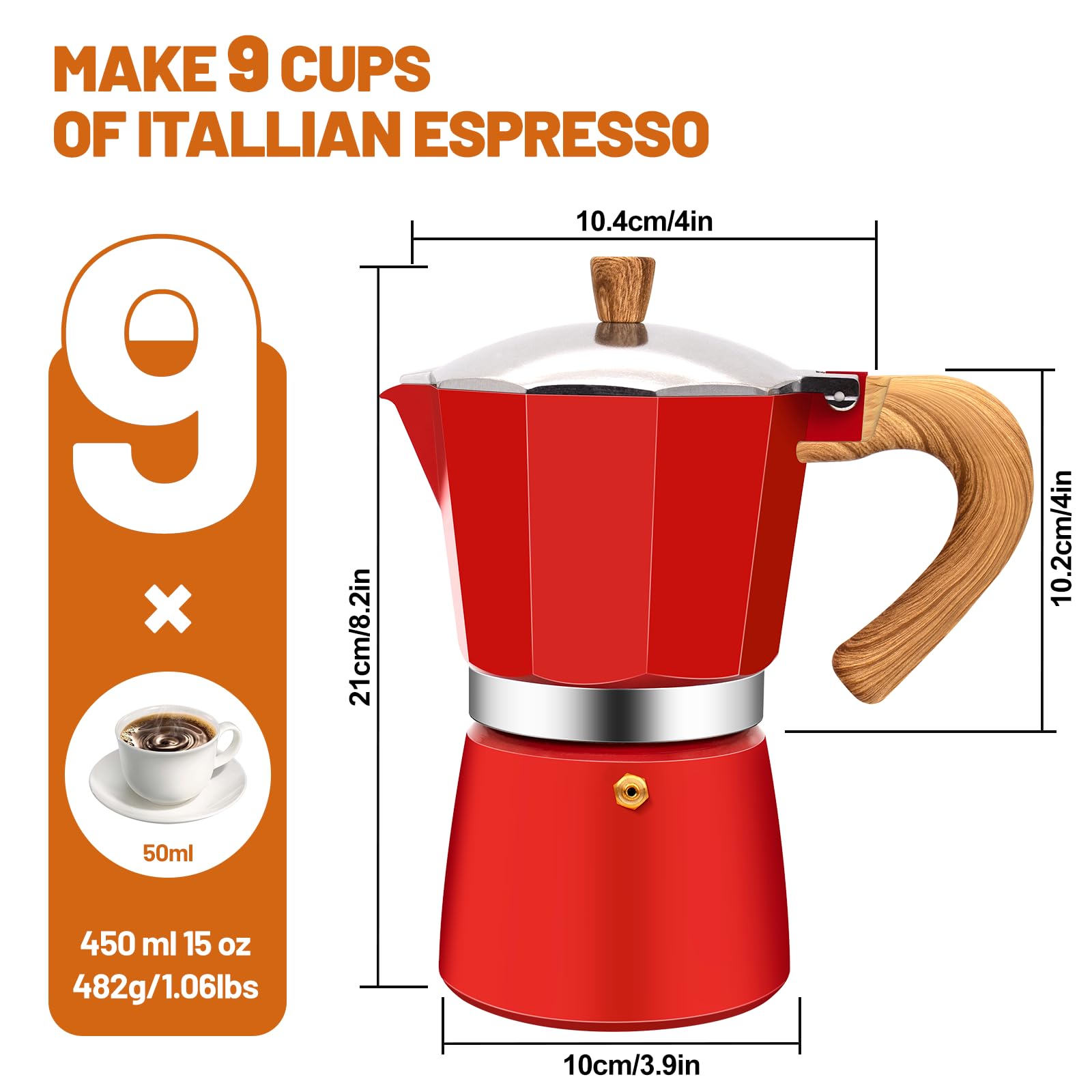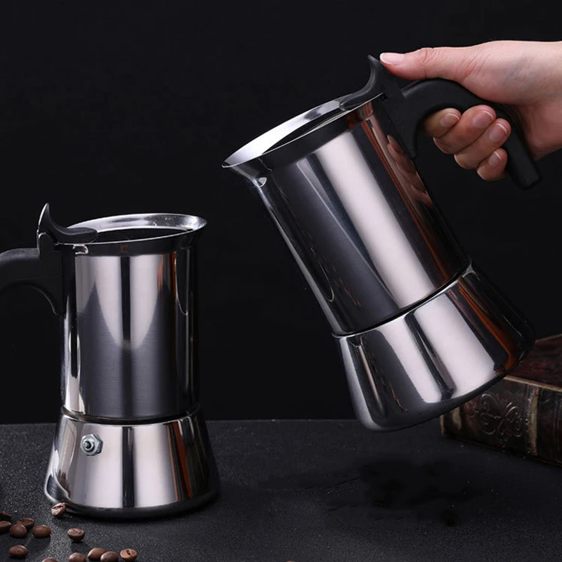 Cafetière à moka professionnelle : goût d'expresso concentré, dérivé de l'extraction professionnelle de cafetière moka. La saveur riche, l'arôme durable et la légère amertume sont au cœur de la fabrication de cappuccino, latte et autres boissons au café Caractéristiques : * Nom de la pièce : cafetière à moka. Cafetière Italienne Cafetière Expresso, 2/4/6/9 Tasses Pot Moka En Acier Inoxydable Portable Machine à Café Expresso Italienne Pour Cuisinières à Gaz, Cuisinières Et à Induction(2 Cups - 100ml Bialetti Induction Caractéristiques : * Construction en acier inoxydable de qualité supérieure : fabriquée en acier inoxydable de qualité alimentaire, cette cafetière à moka garantit durabilité et résistance à la rouille, garantissant que votre café conserve sa saveur pure. Design élégant et fonctionnel : avec une poignée isolée thermiquement et un bec verseur facile, cette casserole à moka combine sécurité et style, avec une finition miroir polie qui améliore votre décoration de cuisine. Pression régulée pour plus de sécurité : comprend une valve de sécurité qui maintient une pression d'infusion optimale, non seulement la sécurité, mais également une meilleure extraction de saveur pour un délicieux café. Haute qualité --- La machine à expresso est fabriquée en acier inoxydable de qualité alimentaire, robuste et durable. Différent des matériaux bon marché... Cafetière expresso classique en aluminium, cafetière Continental Moka percolateur pour italien cubain 1/3/6/9/12 tasses 50/300/600ML *La sécurité d'abord avec la régulation de la pression : équipée d'une soupape de sécurité qui maintient des niveaux de pression optimaux dans la chaudière, cette cafetière à moka améliore l'extraction des saveurs du café tout en garantissant un processus d'infusion sûr. Contenu de l'emballage : 1 cafetière à moka. * Design ergonomique et élégant : doté d'une poignée isolée thermiquement et d'un bec verseur facile, la cafetière à moka assure non seulement une manipulation sûre, mais dispose également d'un miroir poli pour Surface qui ajoute une touche élégante à vos ustensiles de cuisine.
