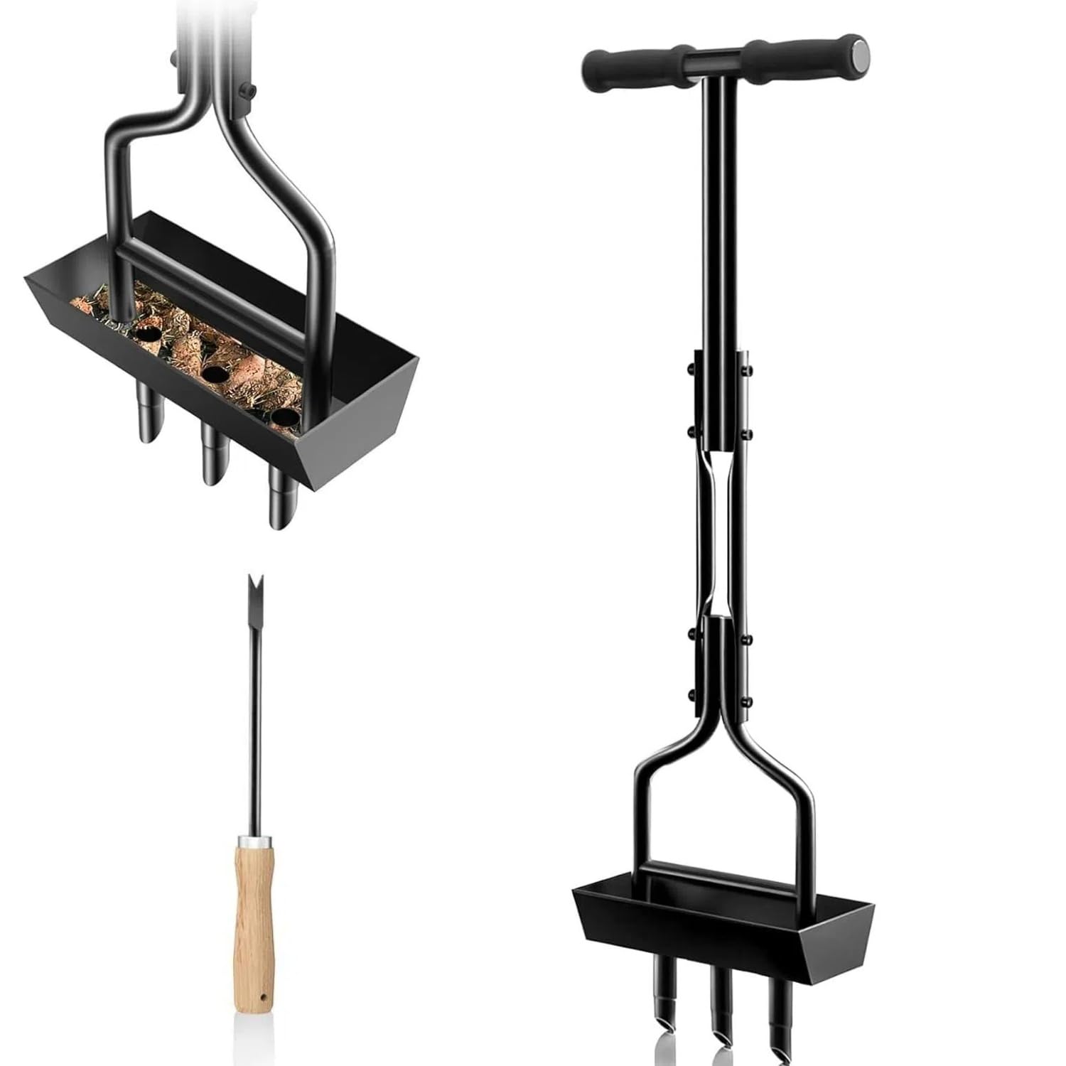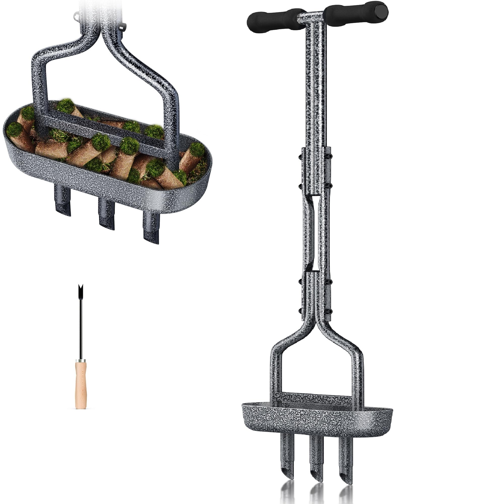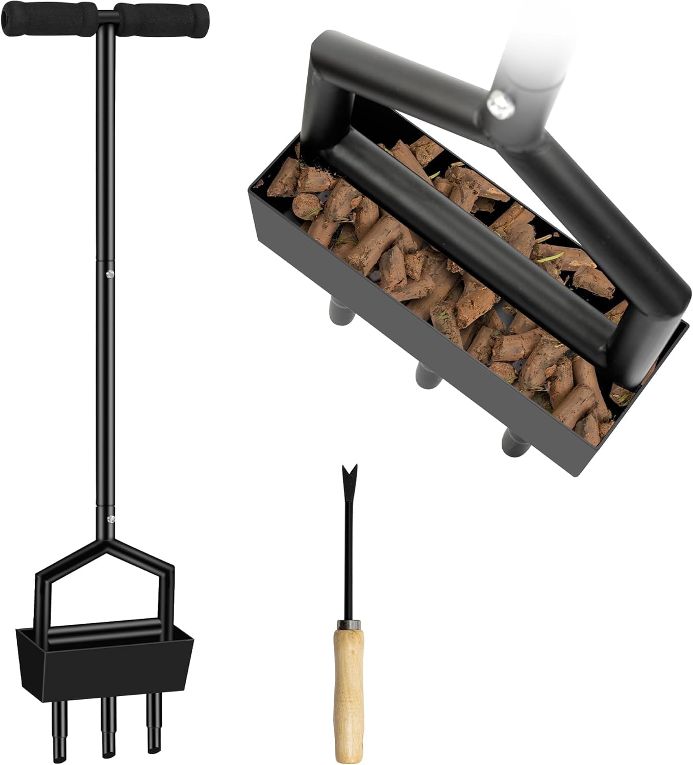 Les repose - pieds offrent un effet de levier supplémentaire pour pousser à travers le sol meuble. Outsunny Aérateur de pelouse, aérateur de Gazon Manuel avec poignée antidérapante, Pointes Creuses, Outil de carottage de pelouse pour l'entretien du Jardin et de la Cour, Vert foncé L'aérateur de noyau de pelouse est fait de fer épaissi, robuste et durable Poignée confortable pour une prise en main facile, vous donne une meilleure sensation lors de l'utilisation et économise l'énergie de ventilation En outre, cet outil de nettoyage avec poignée peut également être utilisé pour le désherbage Aérateur Gazon 3 Dents 96 Cm Plateau Rangement DIYTuning Aérateur De Pelouse Robuste - Outil Manuel Avec 19 Pointes En Fer - Aérateur D'air Grignoteuse Tole Les outils de jardinage aérés sont idéaux pour l'entretien de la Cour, du jardin et de la pelouse. Conçu avec des plateaux de rangement pour recueillir les bouchons de terre dans le collecteur, garder la Cour propre. Equipé d'un outil de nettoyage qui nettoie les dents lorsque celles - ci sont obstruées par la saleté ou de petites pierres et doivent être nettoyées. Les trous laissés sont de la bonne taille pour permettre à l'eau, à l'oxygène et aux nutriments de pénétrer dans le sol et aider l'herbe à mieux pousser HYCHIKA Aérateur Gazon, 15 Pointes en Acier Solide, Scarificateur Pelouse, Aérateurs de Gazon La conception ergonomique, d'une longueur de 96,5 cm / 38, permet à l'utilisateur de se tenir confortablement pendant que la pelouse est aérée, réduisant ainsi la tension musculaire et la fatigue. Aeroforge - Aérateur manuel 3 en 1 pour pelouse avec aérateur à 4...