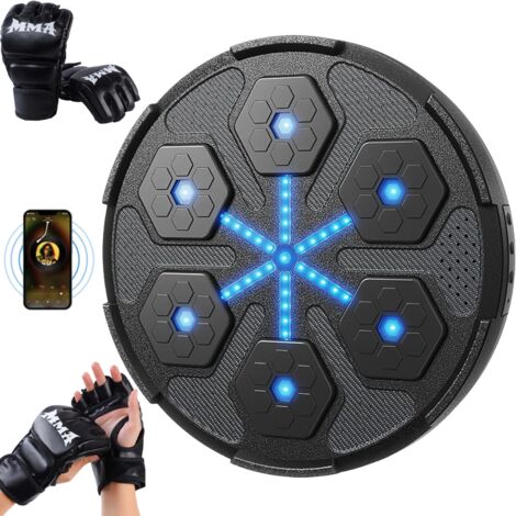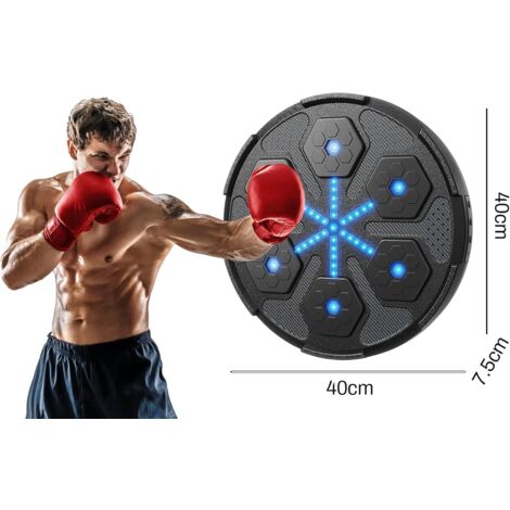 Punching Ball Bluetooth Lumières Led Machine De Boxe Musicale Intelligente Avec LumièRes LED Et Musique Cible Boxe Led Bluetooth 6 Couleurs 40x40cm Supporte jusqu'à 200 kg en toute sécurité sans abîmer les murs stables – idéal pour la maison, la salle de sport ou le bureau. Cette machine de boxe musicale murale allie sport et divertissement. Équipée de 6 cibles épaissies et d’un éclairage LED multicolore, elle propose 3 modes d’entraînement : rythme, boxe, et compétition. Connectez votre smartphone en Bluetooth et entraînez-vous sur vos morceaux préférés Machine de boxe musicale murale avec gants de boxe, 3 vitesses et lumière LED, machine de boxe intelligente Bluetooth, machine de boxe pour enfants et adultes 🛡️ ABS+PU de Haute Qualité & Conception Sécurisée : Cadran en ABS durable avec surface en PU qui dissipe une grande partie de la force d'impact. Améliore la coordination et est le cadeau parfait pour partager des moments en famille, évacuer le stress et s'amuser activement. Cible Murale De Boxe Musicale Intelligente,pour Enfants Cible De 🏠 Montage Murale Gain de Place et Fixation Solide : Installation facile en 3 minutes avec de solides bandes adhésives Nano Grip et des sangles réglables (pour murs de 10-15 cm d'épaisseur). Offre une excellente absorption des chocs, réduit le bruit pendant l'utilisation et assure une longue durée de vie. Vérifier la capacité du mur à supporter le poids avant l'installation. Choisis entre les modes Réflexes, Endurance et FreeStyle – parfaits pour les adultes et les enfants (à partir de 6 ans). 🎵 Entraînement Dynamique au Rythme et Spectacle Lumineux 6 Couleurs : Synchronise ta musique via Bluetooth 5., 0., Vive des séances immersives avec des lumières LED pulsantes en 6 couleurs vibrantes qui réagissent à tes coups, ta vitesse et le rythme. Inclut des gants respirants pour la protection des articulations et un entraînement confortable. Le matériau PU est si souple qu'il peut être utilisé sans aucune douleur même sans gants de boxe. Ne pas dépasser 4 heures de temps de charge maximum Important : À fixer uniquement sur des murs solides et porteurs.