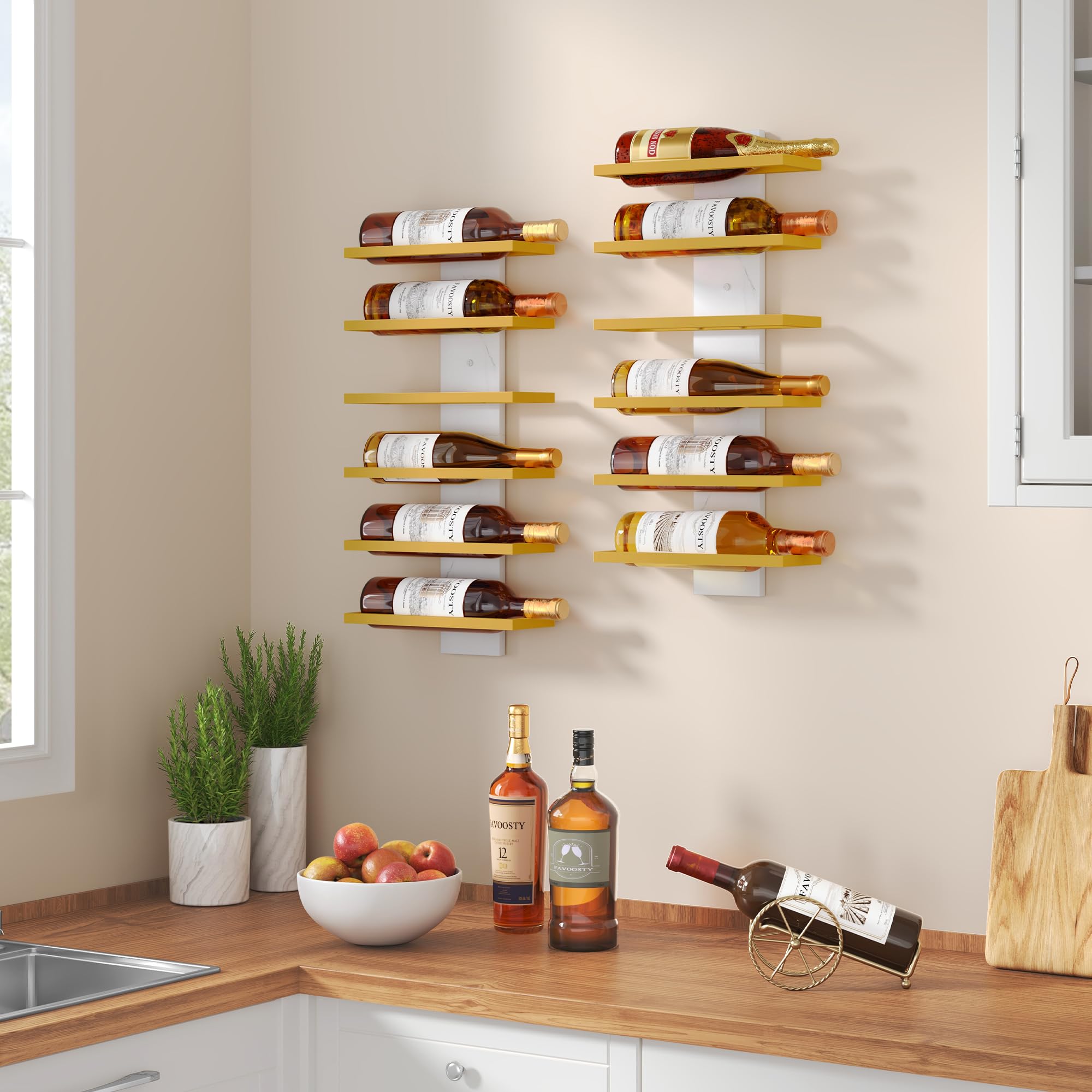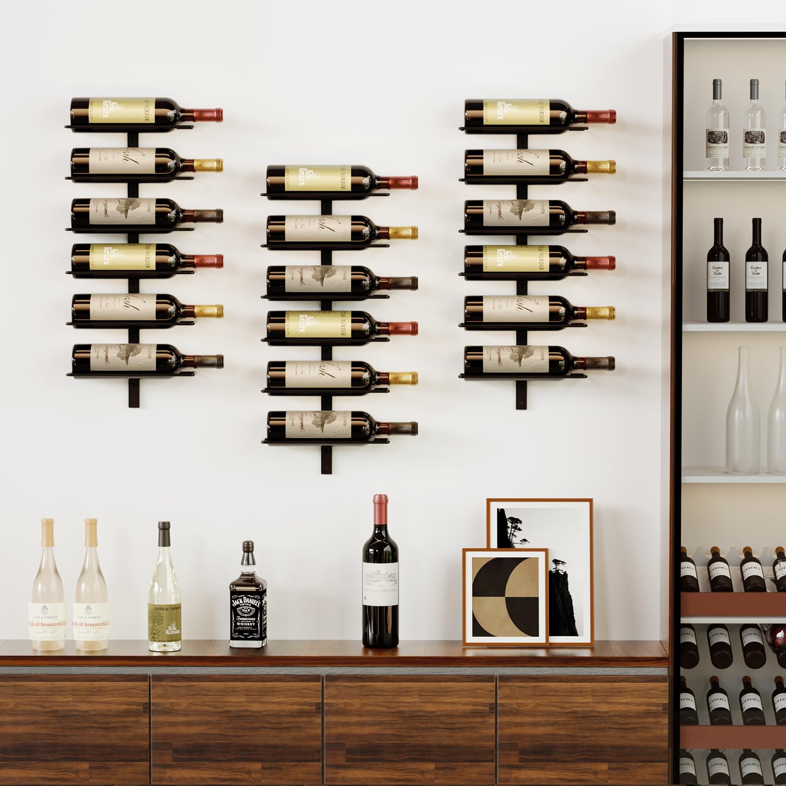FAVOOSTY Lot de 2 étagères à vin murales - Porte-Bouteilles - étagère à Bouteilles avec 3 Niveaux - en métal - pour Salle à Manger, Chambre à Coucher, Cave à vin-Noir 1 Dans la cuisine 2 Dans la salle à manger 3 Dans le salon 4 Dans le bar 5 Dans la cave Etagere Murale Porte Bouteilles, Étagère à Vin Murale, Support Mural à Vin Rouge Pour Amateur De Vins - 8 Trous étagère à Vin Description du produit FAVOOSTY Élégance sur mesure : Présentez vos vins avec style Design de rangement multi-niveaux : le casier à vin à 6 étages peut contenir plusieurs bouteilles de vin en même temps et est parfait pour le stockage et la présentation. Style industriel simple: la combinaison de métal et de bois montre un style industriel simple, ajoutant une touche artistique à la décoration de la maison. Le lot de 6 supports en fer avec revêtement poudre noir est à la fois robuste et élégant. Chaque étagère peut présenter une bouteille horizontalement, créant un... Livraison gratuite sur Étagère à Bouteilles de Vin Murale en Métal Doré 6 Pièces 12 Bouteilles Pour vos trésors liquides L’allié parfait des petits espaces Stabilité inébranlable, protection maximale.
