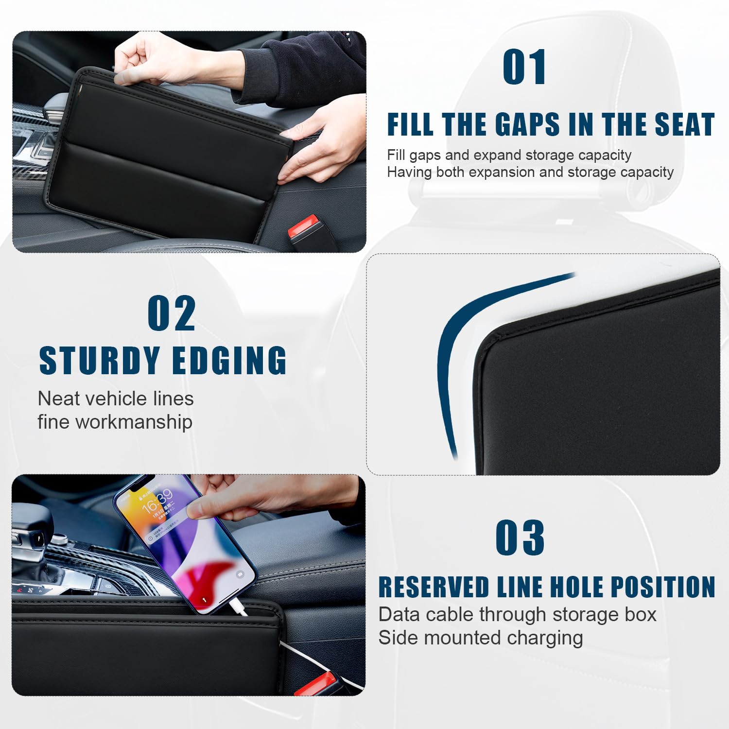 Conserve sa forme même après une utilisation prolongée, sans endommager les sièges. Si vous n'êtes pas satisfait de nos produits, n'hésitez pas à nous faire part de vos commentaires. Rangement Pratique] : Le compartiment du siège auto offre un rangement pratique pour les petits objets tels que les téléphones portables, les portefeuilles, les clés et l'argent, afin que votre voiture reste propre et organisée Sécurité optimisée: Élimine les risques de chute d’objets (clés, téléphone, pièces) dans les espaces entre siège et console. Réduit les distractions au volant pour une conduite plus sûre Surface lisse et facile à nettoyer , 2., Sécurité optimisée: Élimine les risques de chute d’objets (clés, téléphone, pièces) dans les espaces entre siège et console. 2 Pièces Remplissage de Siège Intérieur Car Seat Gap Filler Conforme au mouvement du siège et compatible avec les réglages ainsi que les ceintures de sécurité. Résiste aux taches et conserve son aspect neuf longtemps, même après une exposition régulière à la poussière ou aux liquides Accessoire Rangement Voiture SUV Noir Bande De Remplissage Pour Joint Latéral De Siège De Voiture (2 Pièces Accessoire Voiture SUV Antidérapant Nous espérons sincèrement que vous apprécierez vos achats et la qualité de nos produits., 1., Matériau durable et souple: Fabriqué en matériau EVA respectueux de l'environnement,le matériau est léger et flexible,résistant aux chocs et à l'usure,élastique et difficile à déformer, résistant aux chocs et à la déformation. Caractéristiques : 1., Design organisateur intégré: Compartiments de rangement intégrés pour téléphone, clés et pièces, optimisant l'espace intérieur., 2., Réduction des bruits parasites: Absorbe les vibrations et réduit les bruits entre siège et console pendant la conduite., 3., Compatibilité renforcée avec les serrures de ceinture: Découpe spécifique pour contourner les boucles de ceinture sans obstruction., 4., Esthétique décorative: Finition élégante améliorant visuellement l'habitacle avec maintien durable de l'aspect . Nous offrons un service client attentionné.