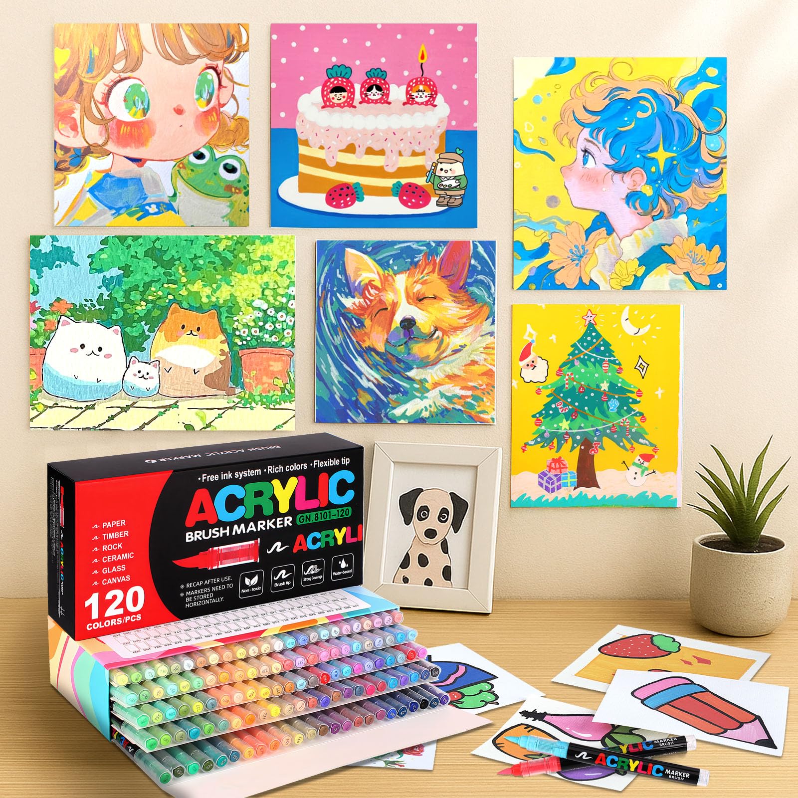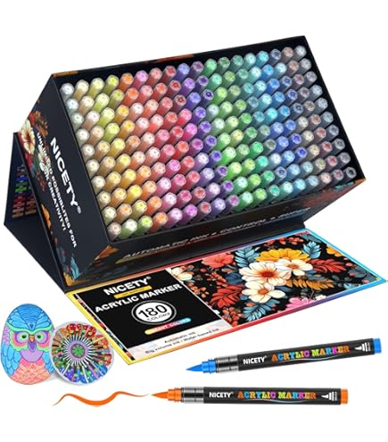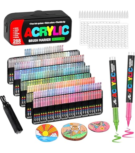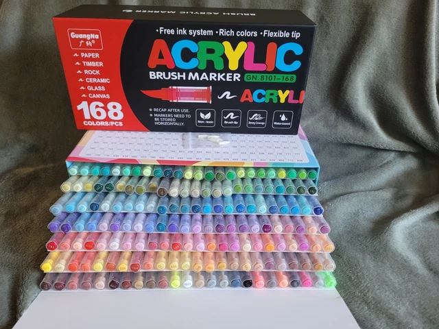 300/500 pièces GuangNa conseils de remplacement double brosse marqueurs stylos tissu roche dessin stylo pierre céramique verre toile bois Art approvisionnement Acrylic Marker Guangna Lot De 288 Marqueurs De Peinture Acrylique, Pointe Pinceau, Encre Imperméable à Séchage Rapide, Pour Peinture Sur Roche, Plastique, Bois, Toile, Verre, Céramique, Métal, Artisanat, Fournitures Marqueur Acrylique Multi-surfaces: Parfaitement adaptés pour une utilisation sur papier, bois, roche, céramique, verre et toile avec une excellente adhérence Grâce à leur système d'encre libre, ils permettent une application homogène et contrôlée sur diverses surfaces. Ensemble Complet: Set de 288 marqueurs acryliques offrant une palette étendue de couleurs riches et vibrantes pour une expression artistique illimitée Le Set de deux cent quatre-vingt-huit Marqueurs Acryliques GUANGNA est conçu pour ceux qui recherchent un contrôle total de la couleur, une couverture uniforme et des résultats professionnels sans devoir investir dans des matériaux coûteux ou des techniques complexes Pointe Flexible: Pointe pinceau souple permettant un contrôle précis et une application fluide pour des traits fins ou larges selon la pression exercée PDF numérque GuangNa - Modèle d'échantllon de marqueurs pnceaux de... Encre Innovante: Système d'encre libre assurant un flux constant et une application homogène pour des résultats professionnels La polyvalence de ces marqueurs en fait un outil idéal pour les artistes, les créatifs et les passionnés de loisirs créatifs souhaitant explorer différentes techniques et supports.