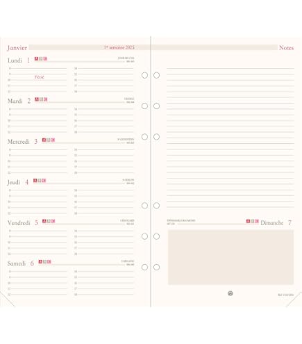 1 semaine sur 1 page + 1 page de notes Les petits plus : les deux signets marque-pages assortis ainsi que des onglets mois par mois pour s'y retrouver plus facilement dans ce joli semainier. Reliure brochée - Semainier 13 mois (décembre à décembre) Agenda Feroe - 1 semaine sur 1 page + 1 page de notes - 15,5 Intérieur impression 2 couleurs sur papier ivoire - 2 signets de couleurs différentes , Langue : français Cet article : Oberthur - 1 Agenda Semainier My Hello - Format 15 x 21 cm - Coloris Jaune Moutarde - Janvier 2026 à Décembre 2026. Taille Planning Semaine Et Notes Agenda Feroe - La Semaine Sur 1 Page Et Une Page De Note - 15 X 21 Cm - Or - Oberthur Pas Cher | Bureau Vallée Semainier 15x21 Cm Avec Notes La semaine sur 1 page et 1 page de note, impression 2 couleurs sur papier ivoire 80 grammes. 2 signets de couleurs différentes. Tranche naturelle avec découpe 13 onglets pour 13 mois