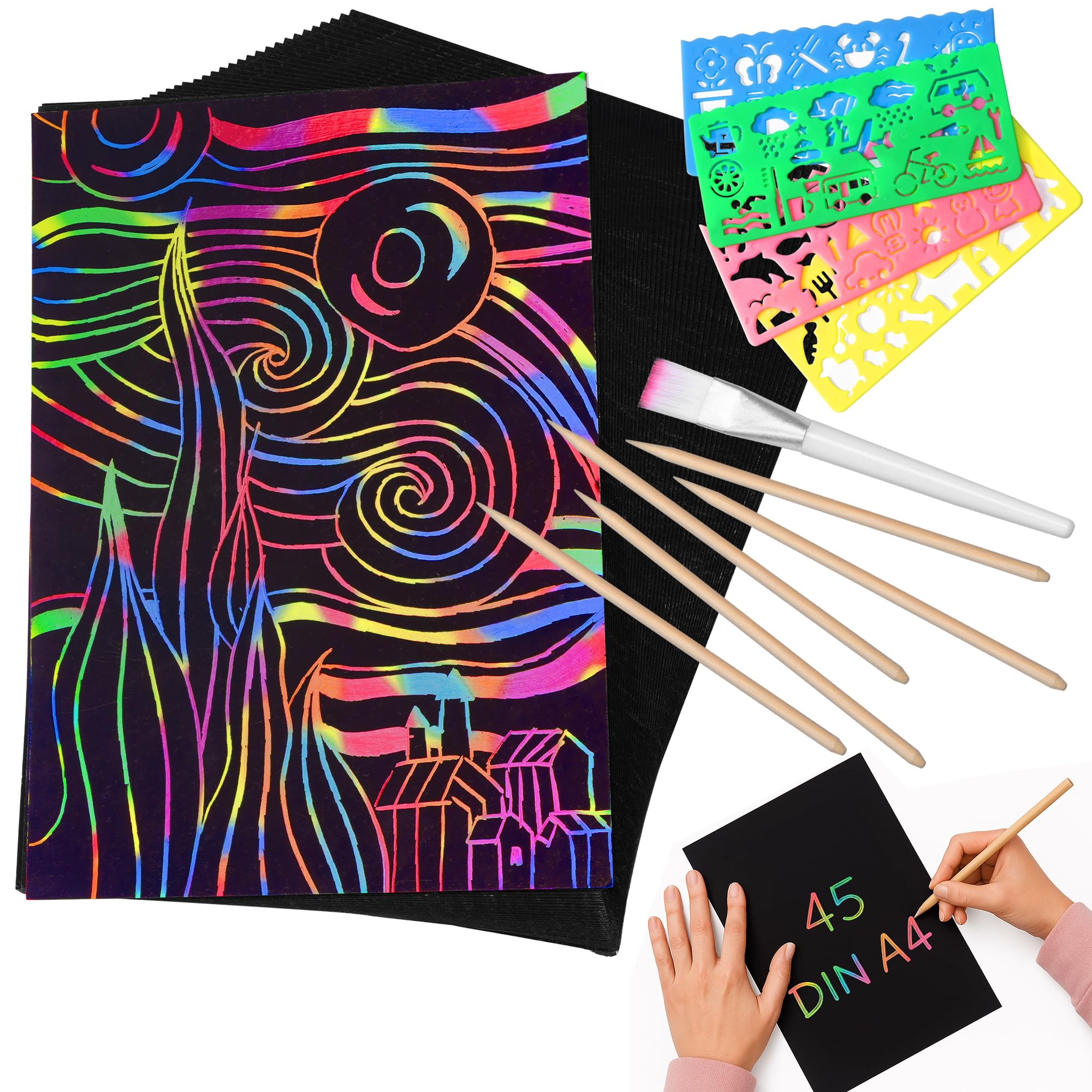 Matériau du produit : papier. Feuilles noires à gratter : pochette de 10 feuilles 10 stylets Contenu : 4 peintures à gratter qui brillent dans le noir Brillent dans le noir pour l'affichage : après l'exposition à la lumière, chaque pièce finie brille doucement dans l'obscurité. Comprend 4 feuilles à gratter avec des motifs baleine, papillon et oiseau, ainsi qu'une gravure précise. Dessin A Gratter Enfants Carte à Gratter Papier 50 Feuilles à Gratter Avec 5 Stylets En Bois Pour Artisanat Cartes à Gratter Brillent Dans Le Noir Motifs baleines, papillons, oiseaux pour la variété : chaque feuille présente un thème animal, stimulant l'imagination et offrant une gamme de styles visuels à explorer et à personnaliser. Ajoute une touche fantaisiste aux chambres, salles de classe ou coins créatifs. Comprend 4 feuilles à gratter avec des motifs de baleine, papillon et oiseau, plus une pour une gravure précise. Garde votre bien rangé tout en améliorant l'illustration finale. Peinture à gratter cuivre - Diamants bruts Cartes créatives pour tous les âges : convient pour les enfants, les adolescents et les adultes. LOT DE 4 Feuilles De Simili Cuir Skivertex EUR 8,00 - PicClick FR