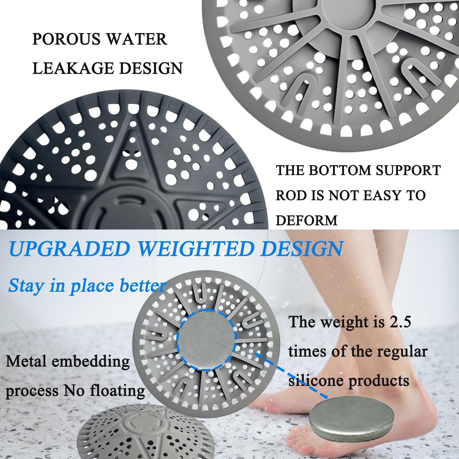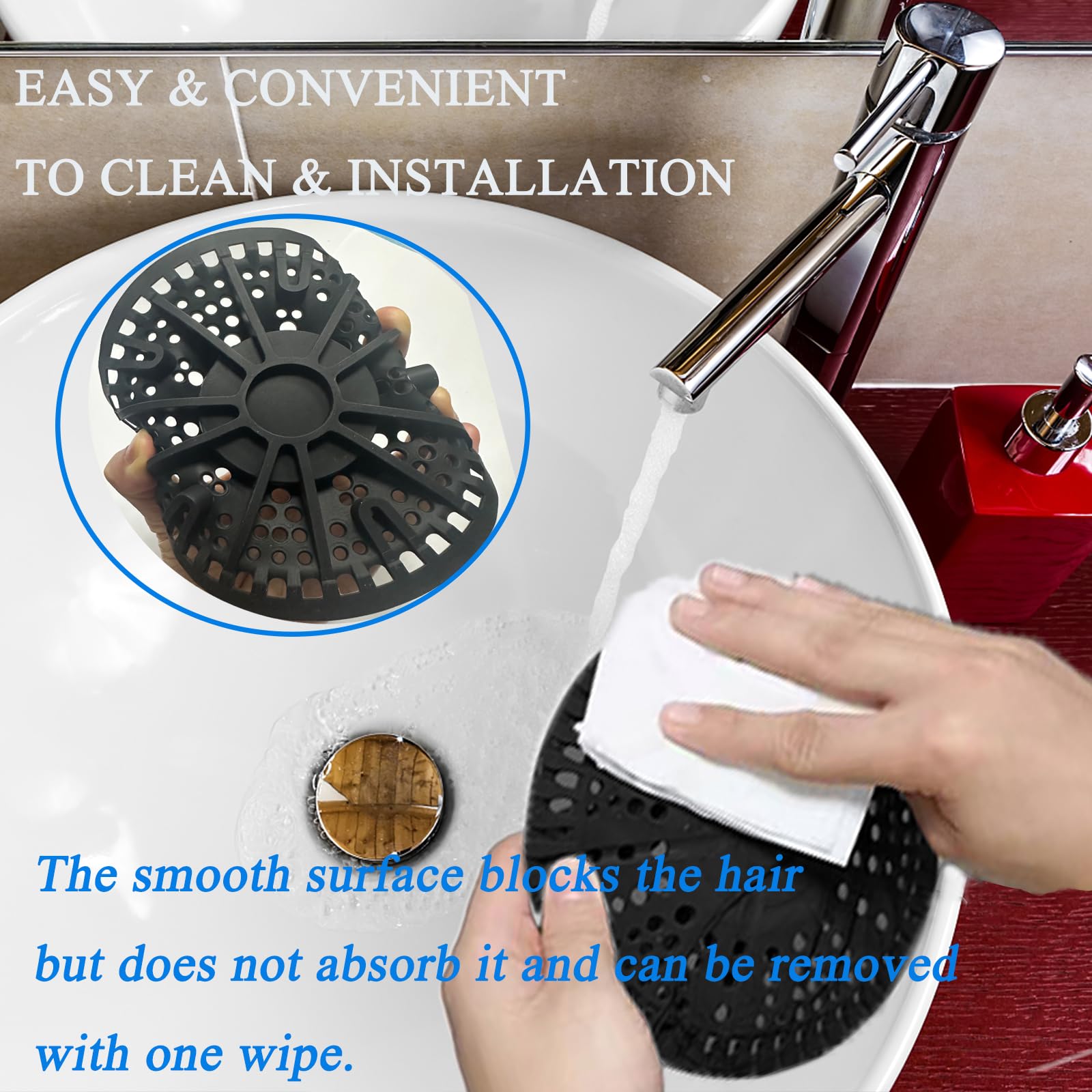 N'hésitez pas à nous contacter pour toute question concernant notre produit. Caractéristiques du produit Couleur : Noir Matériau : Silicone de qualité supérieure Protecteur de siphon en silicone de qualité supérieure, teinture végétale sans formaldéhyde, lavable, sans odeur, isolant thermique et ignifuge, esthétique et durable ; sans danger pour les enfants. Il est également très pratique à nettoyer après utilisation : il suffit d'essuyer les poils et de rincer à l'eau. 【LARGEMENT UTILISÉ】Ce couvercle de bonde de douche empêche efficacement les cheveux, les résidus alimentaires ou les petits débris de boucher la bonde, assurant ainsi un drainage plus fluide et sans obstruction. Installation Aucun assemblage requis : il suffit de le poser sur le siphon et c'est parti. iAnomla Lot de 2 Bouchons de Douche en Silicone Réutilisables, 14 【SILICONE DE QUALITÉ SUPÉRIEURE】Fabriqué en silicone de qualité supérieure, ce collecteur de cheveux pour salle de bain offre une durabilité impressionnante. Sa couleur noire classique s'harmonise parfaitement avec la plupart des baignoires et tuyaux d'évacuation, pour une salle de bain et une cuisine toujours propres et bien rangées. Matériau flexible et non déformable]Ce filtre cheveux baignoire est fabriqué en et résistant à la rouille. Il est étanche à l'eau et peut être lavé avec de l'eau. Il bloque efficacement les odeurs et vous offre une cuisine et une salle de bains fraîches, exemptes de mauvaises odeurs Attrape-cheveux Pour Bonde Lavabo Filtre Cheveux Douche 2 Pièces Filtre à Évier En Silicone Avec Protecteur Drain Silicone Contenu : Largeur : 14 cm, longueur : 14 cm Récupérateur de cheveux en silicone pour bonde de douche (1 pièce) En raison des différences d'éclairage et de configuration de l'écran, la couleur de l'article peut varier. Son design lesté remplace la ventouse traditionnelle, limitant ainsi les mouvements pendant la douche. iAnomla Récupérateur de cheveux pour siphon de douche, protection en silicone de qualité supérieure pour siphons de sol classiques de salle de bain, baignoire et lavabo Le siphon de douche mesure 14 x 14 cm (5,5 x 5,5 pouces) et convient à la plupart des baignoires et lavabos. Nous vous répondrons dans les plus brefs délais. iAnomla Récupérateur de cheveux pour siphon de douche, protection en silicone de qualité supérieure pour siphons de sol classiques de salle de bain, baignoire et lavabo. Il est particulièrement adapté aux éviers de cuisine, salles de bain, baignoires, buanderies et piscines.