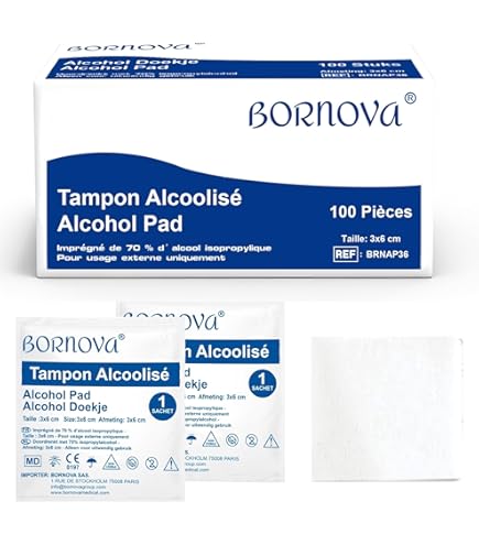 Ils conviennent notamment aux personnes diabétiques (par exemple, tampon alch. à usage unique, fiable et facile à transporter. Utilisation quotidienneCes lingettes trouvent leur place dans divers environnements : salons de beauté (entretien des accessoires), studios de tatouage ou piercing (préparation locale), cabinets de soins ou d’esthétique (nettoyage rapide), bureaux ou établissements scolaires (objets partagés comme stylos ou tablettes). Hygiène en déplacementGrâce à leur format individuel, ces lingettes peuvent se glisser dans une poche, un sac ou une trousse. Description du produit Les tampons alc. à usage unique : Parfait pour la maison, le travail, les voyages – cette lingette mobile s’utilise facilement au quotidien. pour diabétique), aux professionnels de santé, et aux utilisateurs de stylos injecteurs, seringues ou tests de glycémie. Pourquoi choisir les tampons BORNOVA ?Produit polyvalent pour le nettoyage rapide de la peau et des objets, format compact et emballage individuel, utilisation simple sans rinçage, sans parfum, sans résidus, pratique à emporter pour une hygiène immédiate partout. Nettoyage ciblé des objets du quotidienCes lingettes sont idéales pour un nettoyage rapide de vos objets personnels tels que téléphones, lunettes, écouteurs, montres, cartes bancaires, poignées, claviers, télécommandes, embouts de thermomètre ou stylets tactiles. – utilisation simple et pratique., Pad alch. Desinfectant Main OUHOE Acné Pour Le Nettoyage De La Peau Acné, Grains De Beauté Noirs Nettoyage Peau Avant Injection Lingette de nettoyage des mains et de la peau emballée individuellemen Leur format compact (3 x 6 cm) ne les rend pas adaptés au nettoyage de grandes surfaces. Amazon Ce lot contient 10 petites boîtes, chacune renfermant 100 tampons alc. , soit un total de 1000 tampons. Chaque tampon alch. est emballé individuellement... Elles sont régulièrement utilisées lors de déplacements en transports en commun, dans les salles d’attente ou dans les espaces de travail partagés. Elles sont également un ajout pratique à une trousse de premiers soins, notamment dans des environnements très fréquentés. Elles sont idéales pour les voyages, les déplacements professionnels, l’hôtel ou le travail, pour garder vos objets personnels propres en toute circonstance. Meditrade 1283M Nitril NextGen Lot de 100 gants d'examen et de protection extensibles sans poudre, non stériles Bleu Taille M Chaque lingette à 70 % d’alch. sont recommandés pour nettoyer la peau avant une injection ou un soin localisé. Remarque sur l’utilisationCes pads alch. isopropylique, ils sont parfaits pour ceux qui recherchent une lingette alch.