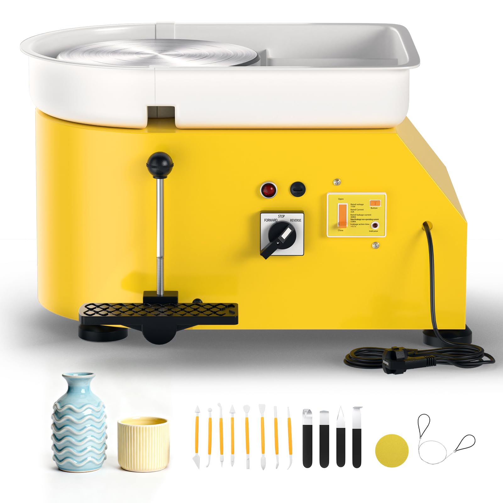 【Sens de rotation réglable】Le plateau tournant de ce Roue de Poterie tourne dans le sens horaire et antihoraire. Libérez votre créativité avec notre tour de potier de 10 pouces, idéal pour les professionnels et les amateurs. Cette machine à poterie à entraînement direct est parfaite pour l'enseignement scolaire et les magasins de bricolage La roue tourne en douceur et en silence, avec une plage de vitesse de 0 à 300 tr/min. Vous pouvez ajuster le mode de rotation selon vos besoins quotidiens, et la pédale ergonomique vous permet de maintenir une posture naturelle et stable pour une expérience de poterie optimale ! Créez vos propres œuvres d'art avec ce potier ! Ils conviennent aux cours de poterie pour enfants, aux potiers amateurs, aux professionnels et aux passionnés, pour tous les niveaux de compétence, du débutant au professionnel. Équipé d'un double système de protection contre les fuites, il assure jusqu'à 8 heures de fonctionnement stable. Audizione Evento rottura tornio a pedali insediamento Abbagliante pendente La conception unique de la rainure de dérivation empêche efficacement les éclaboussures d'argile, améliorant ainsi l'efficacité de l'entretien de 60 %. Libérez vos mains pour créer la forme souhaitée. Le réservoir d'eau est amovible après utilisation pour un nettoyage et une réutilisation faciles. Confort pour Tous : Son bassin d'eau amovible est facile à nettoyer et offre une durabilité renforcée pour garder votre machine à l'abri de l'eau. Idéale pour les débutants, cette tournette de potier facilite votre processus créatif pour une expérience de poterie plus agréable Plateau Tournant 0-300 Tr/min VEVOR Roue De Poterie 350W Tour De Potier Electrique Rose Avec Pedale Ecran Tactile LCD, Machine Kit Tour Potier Débutant Outils 【Réservoir d'eau amovible】Le tour poterie est équipé d'un réservoir d'argile amovible à 360°, offrant un grand espace et évitant les éclaboussures.