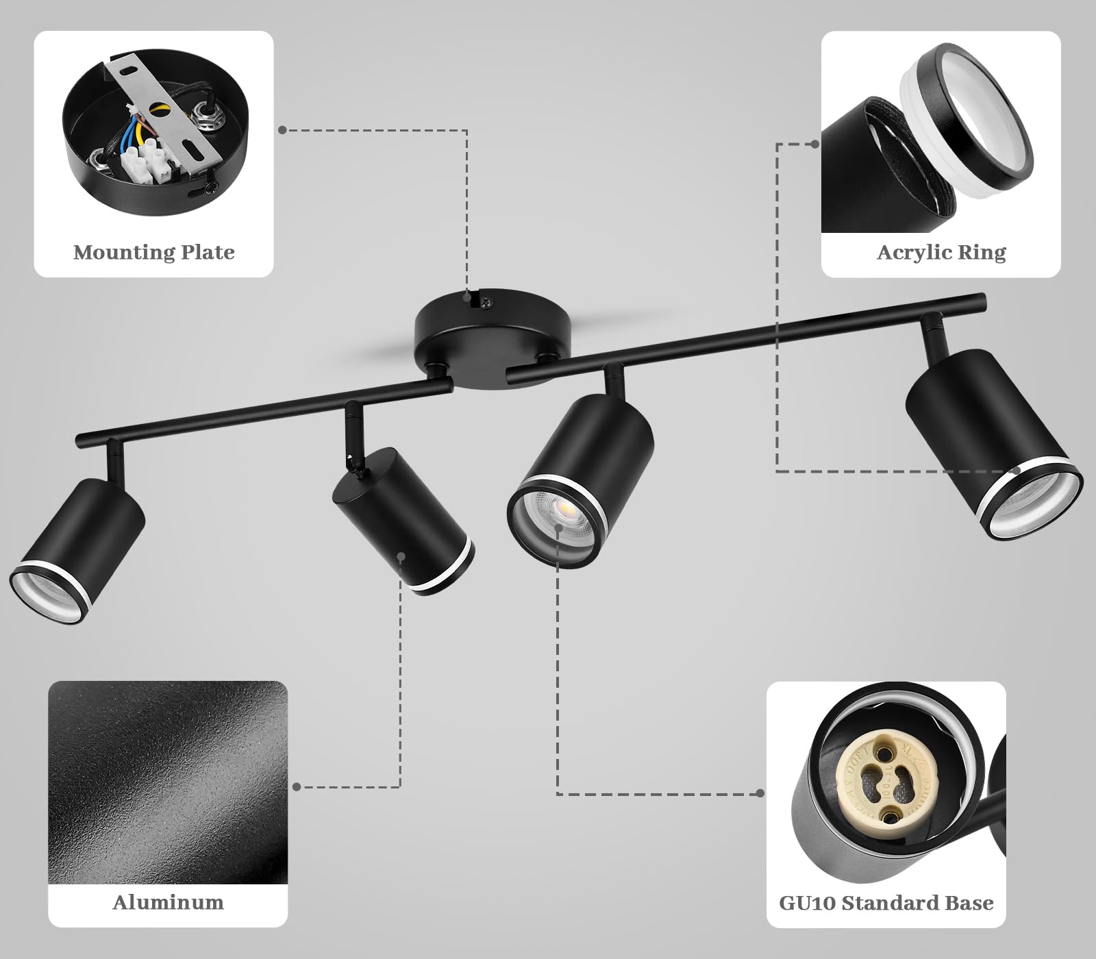 Intemporel & Polyvalent : Ce éclairage de plafond est fabriqué en métal de haute qualité, résistant à la corrosion et à la décoloration pour une durabilité optimale. Grâce à son design sans source lumineuse incluse, vous êtes libre de choisir les ampoules selon l’effet lumineux souhaité. Gr4tec Plafonnier 6 Spots LED Noir, Moderne Luminaire Plafonnier LED Orientable, Éclairage de Plafond Spot Pivotant, Plafonnier Spot GU10 pour Cuisine Salon Chambre (Sans Ampoule Plafonnier spot Plafonnier spot : la sélection produits Leroy Merlin de ce samedi au meilleur prix ! Retrouvez ci-après nos 9210 offres, marques, références et promotions en stock prêtes à être livrées rapidement dans nos magasins les plus proches de chez vous Son fini noir mat et son design minimaliste s’intègrent harmonieusement dans les styles modernes, industriels, scandinaves et bien d’autres – un luminaire plafonnier qui traverse les tendances. Gr4tec Plafonnier 6 Spots LED Noir, Moderne Luminaire Installation Facile : Longueur totale : 120 cm. Service Sans Soucis : Ce spots de plafond est disponible en 3 versions (2/4/6 spots) pour s’adapter à vos besoins. Installation Facile Spots Luminaire Plafonnier Led 6 Spots Orientables, Gu10 Plafonnier Spot Noir, Rampe De Spot Plafond, Sans Ampoules[m3347] - Maison Plafonnier Moderne Réglable Dimensions de la tête : 75 mm x 52 mm. 1 Plusieurs choix 2 Cuisine 3 Bureau 4 Dressing 5 Salon Options Flexibles d’Ampoules GU10 : Ce plafonnier cuisine est équipé d'une douille GU10 standard, compatible avec toute ampoule GU10 (max., 54W par ampoule).