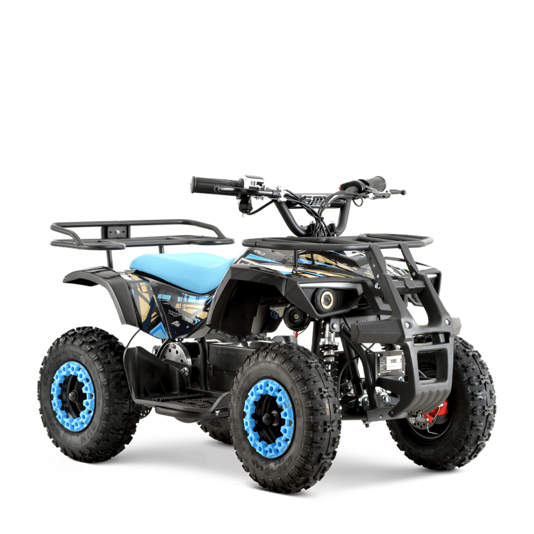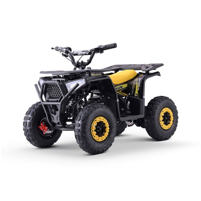 Il est conçu pour se démarquer par un look professionnel, similaire aux quads professionnels adultes. Vitesse maximale : 25 km/h Sa finition soignée en fait le quad parfait pour les jeunes enfants moins expérimentés. Le temps de charge est estimé à 5 heures avec une autonomie de 1h30 selon la charge et le terrain. Description du produit ATV - Pocket Quad pour enfants Beneo Motors ESCAPE Électrique - 800W Beneo Motors ESCAPE - Électrique MOTEUR PUISSANT : 800W, Batterie : 36V Dimensions assemblées : 106 x 60,5 x 69 cm Grâce aux freins à disque avant et arrière, il offre un freinage rapide et efficace ! Convient même aux débutants complets dès 3 ans. Les roues de 6 pouces offrent une très bonne maniabilité et stabilité. Dimensions : Taille du paquet : 110 x 62 x 42,5 cm Quad Electrique Adulte ATV - Mini-quad Pour Enfants Beneo Motors Adventure Rouge - 50cc Quad Miniature ATV - Quad pour Enfants Beneo Motors SUPER POWER Rouge - 110cc Feu de frein arrière actif Beneo Motors Quad ESCAPE - Électrique 800WÂge minimum : à partir de 3 ansBatterie 36VPrésentation du Beneo Motors ESCAPE - Électrique - Le quad idéal pour les enfants de 3 à 6 ans avec toutes les fonctions de sécurité : limiteur de vitesse à 3 positions (5-15-25 km/h), freins à disque, protection de chaîne.1 Design élégant et dynamique Avec son design sportif et affûté, l’ESCAPE - Électrique n’a rien d’enfantin. Équipements supplémentaires : Suspension de haute qualité avec amortisseurs Pas d’odeur d’échappement, pas de bruit comparé aux véhicules tout-terrain à essence. Quad Électrique : Madox 800W 36V MINI QUAD ENFANT ELECT Quad Nitro Motors Il suffit de charger la batterie, vérifier le système de freinage et les pneus, et le quad est prêt à rouler. Pas d’odeur d’échappement, pas de bruit comparé aux véhicules tout-terrain à essence., 2., Design élégant et dynamique Avec son design sportif et affûté, l’ESCAPE - Électrique n’a rien d’enfantin. Phare avant LED pour rouler dans l’obscurité Transmission : Automatique avec marche arrière