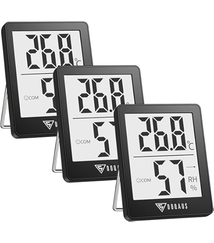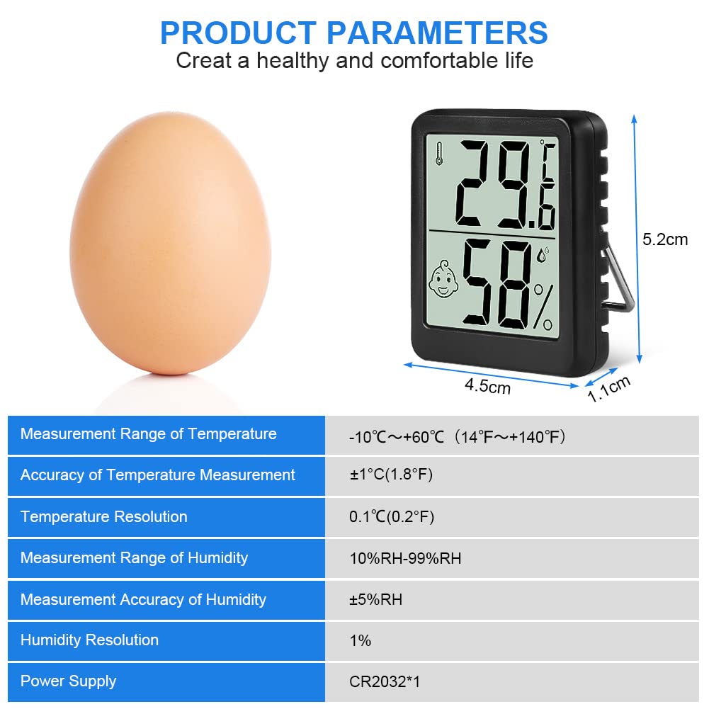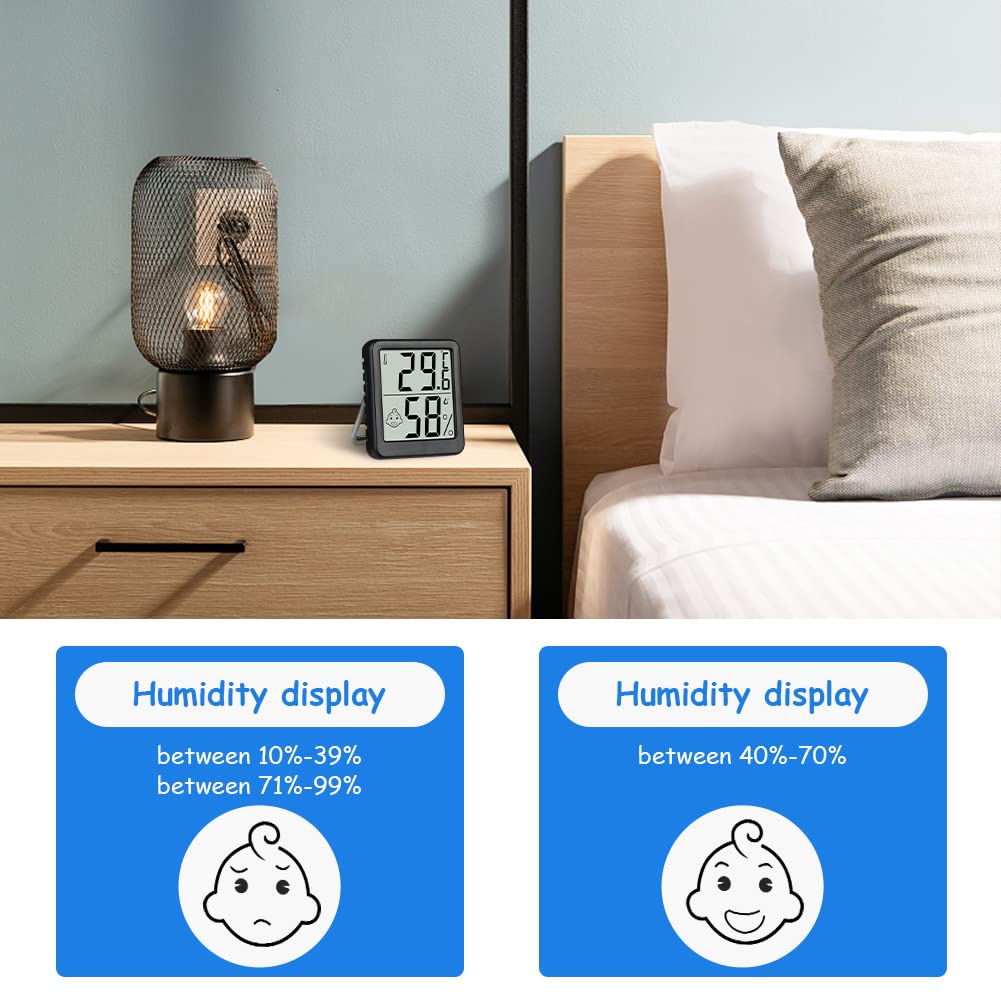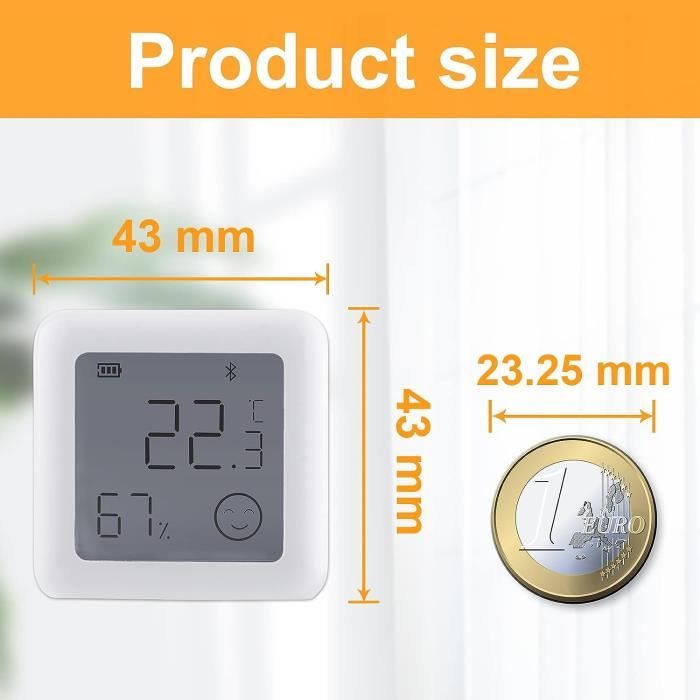 Thermometre Interieur Thermomètre Intérieur, Thermomètre Hygromètre Numérique, 3Pcs Mini Thermomètre Connecté 🖵【FACILE À LIRE】La police plus grande indique la température et l'humidité actuelles, affichant des données en temps réel, qui peuvent être facilement lues même à distance. Ils aident à ajuster les paramètres de l'humidificateur, du déshumidificateur et du contrôleur d'humidité, ce qui est idéal pour surveiller les conditions de vie et la santé de votre famille en prévenant les rhumes, la peau sèche, l'asthme, les allergies et les moisissures HYGROMÈTRE À THERMOMÈTRE NUMÉRIQUE INTELLIGENT] Le mini-mètre numérique de température et d'humidité Flintronic est petit et exquis, seulement 4,3 * 4,3 * 1,3 cm, 21 g. Il a 2 types d'icônes. Lorsque l'humidité est comprise entre 40% et 70%, il affichera un visage souriant 🌡【PRÉCISION FIABLE】Plage de mesure de température : -10℃~+60℃ ; résolution de température : 0,1℃ ; plage d'humidité : 10 % à 99 % HR ; précision de la mesure de la température : ± 5 % HR. Avec ce thermo-hygromètre, vous pouvez toujours voir les changements dans votre maison en un coup d'œil. Thermomètre Hygrometre Intérieur, 2PCS Mini Thermomètre Ce qui facilite le maintien de votre maison saine et confortable. ✔︎ Vous avez toujours une vue d'ensemble à jour du climat intérieur et pouvez donc l'adapter individuellement à vos besoins individuels. Spécifications: Matériau : ABS Taille : 5,2 x 4,5 x 1,1 cm. Taille : 5,2 x 4,5 x 1,1 cm. Plage de température : -10℃~+60℃(14℉~+140℉) Précision de la mesure de la température : ±1 °C (1,8 °F) Résolution de température : 0,1°C Plage de mesure de l'humidité : 10 % HR-99 % HR Précision de la mesure de l'humidité : ± 5 % HR Couleur : Blanc / Noir (Veuillez confirmer votre couleur et votre quantité avant d'acheter) Liste de colisage: 3 x Thermomètre Veuillez noter : En raison de la mesure manuelle, il peut y avoir des erreurs de taille ; En raison de l'environnement de prise de vue, il peut y avoir une différence de couleur ; N'hésitez pas à nous contacter si vous avez des questions sur notre produit. Lorsque l'humidité est inférieure à 40 % ou supérieure à 70 %, elle affiche une expression malheureuse. 🙂☹️【MONITEUR DE TEMPÉRATURE D'HUMIDITÉ】Le thermometre hygrometre interieur a 2 niveaux de symboles pour indiquer l'état de l'air, et il affichera un visage souriant lorsque l'humidité est comprise entre 40% et 70%. C'est important pour votre peau, votre haleine et d'autres bienfaits pour la santé!