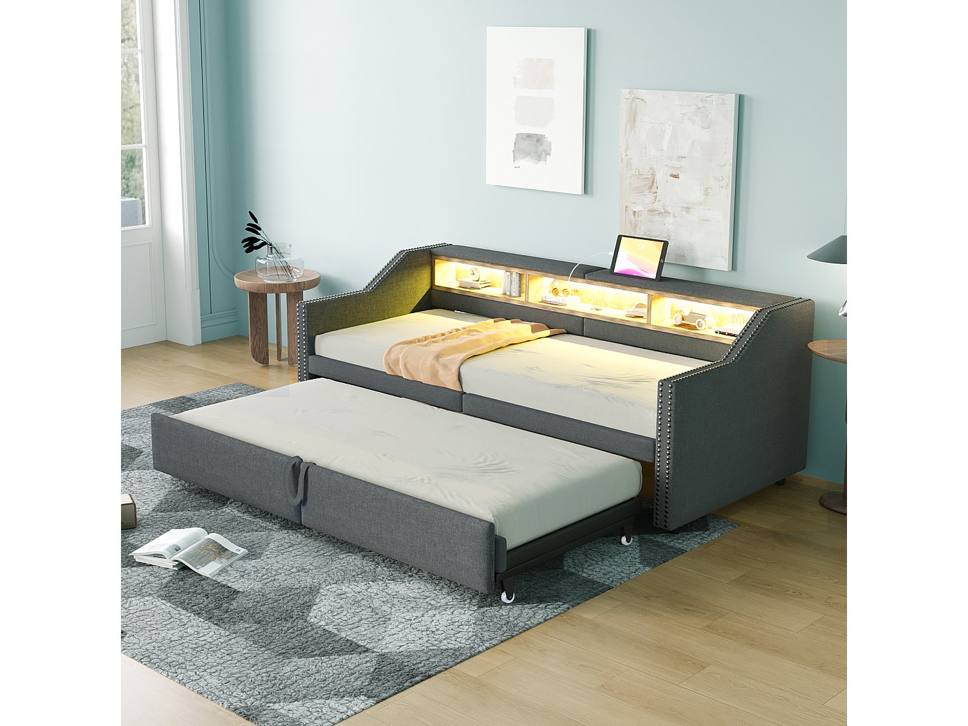 Matériaux de haute qualité et design robuste: fabriqué avec une structure solide en bois massif, notre lit simple blanc allie résistance et style. Le sommier à lattes robuste offre à votre matelas un maintien ferme et assure un confort et une stabilité durables. Son aspect blanc simple et lumineux s'adapte à différents styles d'intérieur., 2., Le design multifonctionnel vous offre plus de possibilités pour l'aménagement de votre chambre et est un must pour les petits appartements modernes. Le plaisir de l'installation vous plaira encore plus à ce lit. Une solution trois en un pratique : ce meuble combine trois fonctions en une : un élégant canapé double, un lit simple pratique pour un enfant ou une fille et se transforme facilement en un canapé-lit double. Lit Sol Sans Matelas Blanc Lit Enfant Simple 90x200cm Avec Lit Gigogne 90x180cm, Avec Bureau, 3 Compartiments De Rangement à Côté Du Lit, Sans Matelas, Gris Gigogne Lit But Un lit avec espace de rangement: un lit avec tiroirs est idéal pour ceux qui ont besoin d'un espace de rangement supplémentaire. Facile à installer: des instructions détaillées et des pièces complètes peuvent vous aider à terminer l'assemblage facilement et rapidement. Temps de montage estimé : 1 heure. Les tiroirs glissent en douceur et permettent ainsi un accès facile à vos affaires. Design Compact et Fonctionnel : Avec son design à bord droit, ce canapé-lit permet de gagner de la place. Les tiroirs de rangement intégrés contribuent à maintenir la pièce ordonnée et simple, idéale pour les petites maisons ou appartements Caractéristiques: 1., ce canapé-lit est fabriqué en bois massif de haute qualité. Nombre de personnes recommandé: 2 personnes Autres outils nécessaires : tous les outils/tournevis sont inclus. Deux tiroirs intégrés sous le lit offrent de la place pour les vêtements saisonniers, la literie, les couvertures et autres articles que vous souhaitez garder à portée de main mais hors de vue. Colis Quantité : 2 Matelas inclus : non. Le couchage gigogne est équipé d'un véritable sommier à lattes, conçu pour accueillir un matelas de qualité. Vos invités ne dormiront pas par terre, ils dormiront dans un vrai lit douillet Lit gigogne simple - 90 x 200 cm + 90 x 190 cm - Canapé-lit avec Avec son design élégant, il s'adapte aussi bien aux chambres d'enfants qu'aux environnements modernes.