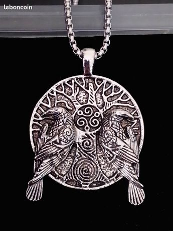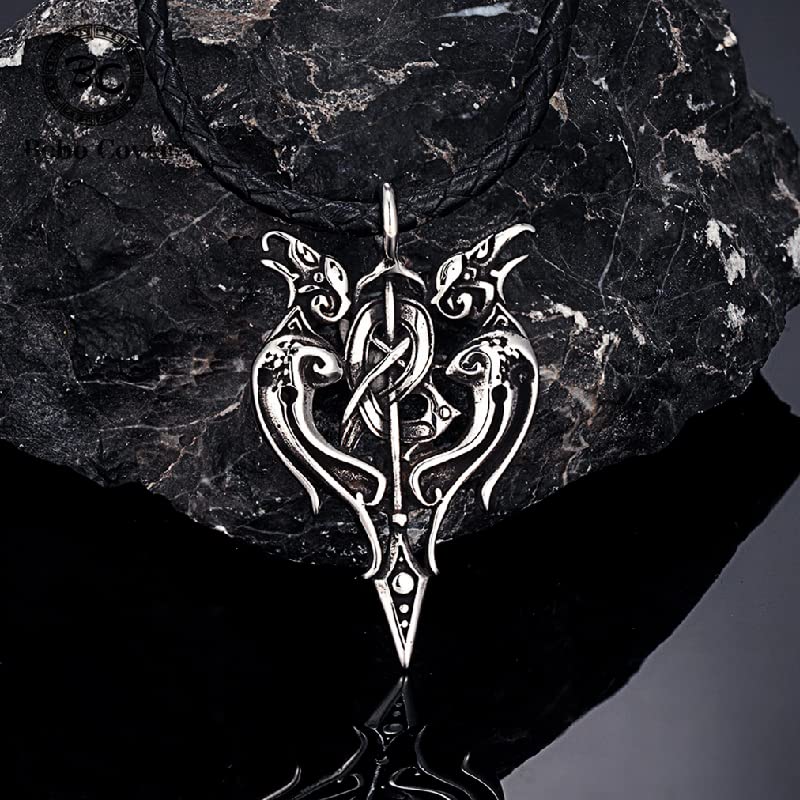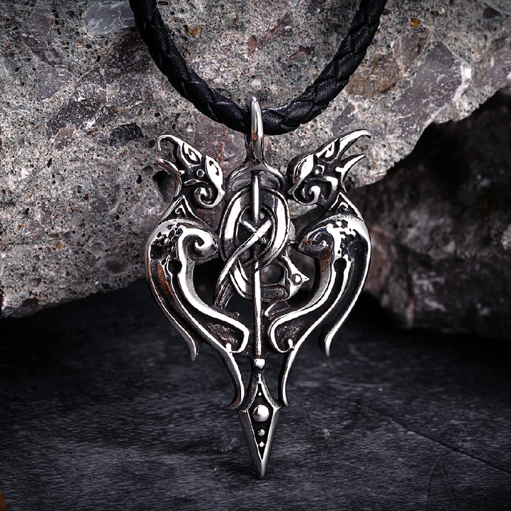 DXIUORF Viking Collier Pour Hommes Talisman Saint-Georges Dragon Corbeau Norse Loup Boussole Amulette Satan Baphomet Chèvre Viking Nordique Rune Punk Bijoux Cadeaux Celtic Knot Pendentif