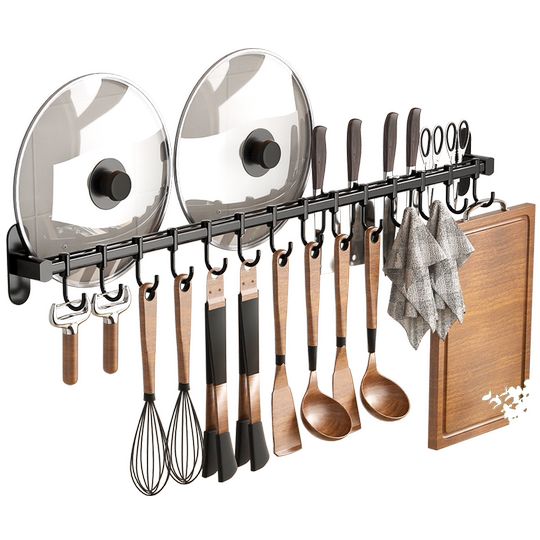 étagère Ustensiles Porte-ustensiles Mural Inox - 40 Cm /6 Crochets | Leroy Merlin Porte-cuillères 8 Crochets Étagère murale à crochets | Rotin. 50 x 15 x 25 cm. | Nature Couleur. Noir ; Caractéristique spéciale. Résistant à la rouille ; Dimensions du produit. 3,5P x 40l x 3,5H centimètres ; Type d'étagère. Étagère suspendue ; Nombre... En acier inoxydable SUS304., Robuste et durable : fabriqué en acier inoxydable SUS304, bien fait et robuste JOPOO Rail suspendu en acier inoxydable pour ustensiles de