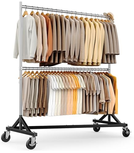 Portant à vêtements commercial et facile à monter : le porte-vêtements est adapté à un usage commercial, par exemple par exemple dans les magasins de détail, les marchés de poissons et les marchés aux puces, mais aussi pour le domaine privé, par exemple par exemple dans la chambre à coucher, le dressing ou la buanderie. Prend en charge jusqu'à 625 livres, ce qui le rend idéal pour les vêtements, vêtements et accessoires lourds sans compromettre la stabilité ou la force Capacité de charge de 182 kg : notre porte-manteau robuste est fabriqué en acier de haute qualité avec des barres de 1,5 mm d'épaisseur pour plus de stabilité. Facile à transporter : notre cintre à roulettes est équipé de 4 roues qui tournent tout autour et de 2 roulettes pivotantes verrouillables. Le support en Z peut également être démonté en ses pièces pour le ranger ou le transporter au quotidien. Les roues en caoutchouc sont un must pour chaque appartement et roulent facilement même sur les tapis. Grand espace de rangement et hauteur réglable : la hauteur verticale du porte-vêtements Z peut être réglée à 150 - 165 - 180 cm. Portants à roulette, portants vêtements boutique Dimensions : 160 x 60 x 150-180 cm. Avec ce porte-vêtements, vous pouvez dire adieu à l'idée de bouger ou de vous plier. Le grand espace de rangement réduit l'espace de la famille et assure un environnement propre et bien rangé dans l'appartement. Construction robuste et dimensions flexibles : le porte-manteau HOKEEPER Heavy Duty offre une stabilité fiable avec une capacité de charge allant jusqu'à 283 kg, idéal pour un usage professionnel et privé Support Z Charge 182 Kg VEVOR Portant à Vêtements Mobile 120 X 36 X 160 Cm Porte-Vêtements Sur Roulettes à 2 Niveaux 68 Portant Vêtements Ainsi, des vêtements de différentes longueurs tels que des robes longues, des manteaux d'hiver, des t-shirts pour différents groupes d'utilisateurs tels que les femmes, les hommes, les enfants et les personnes âgées.
