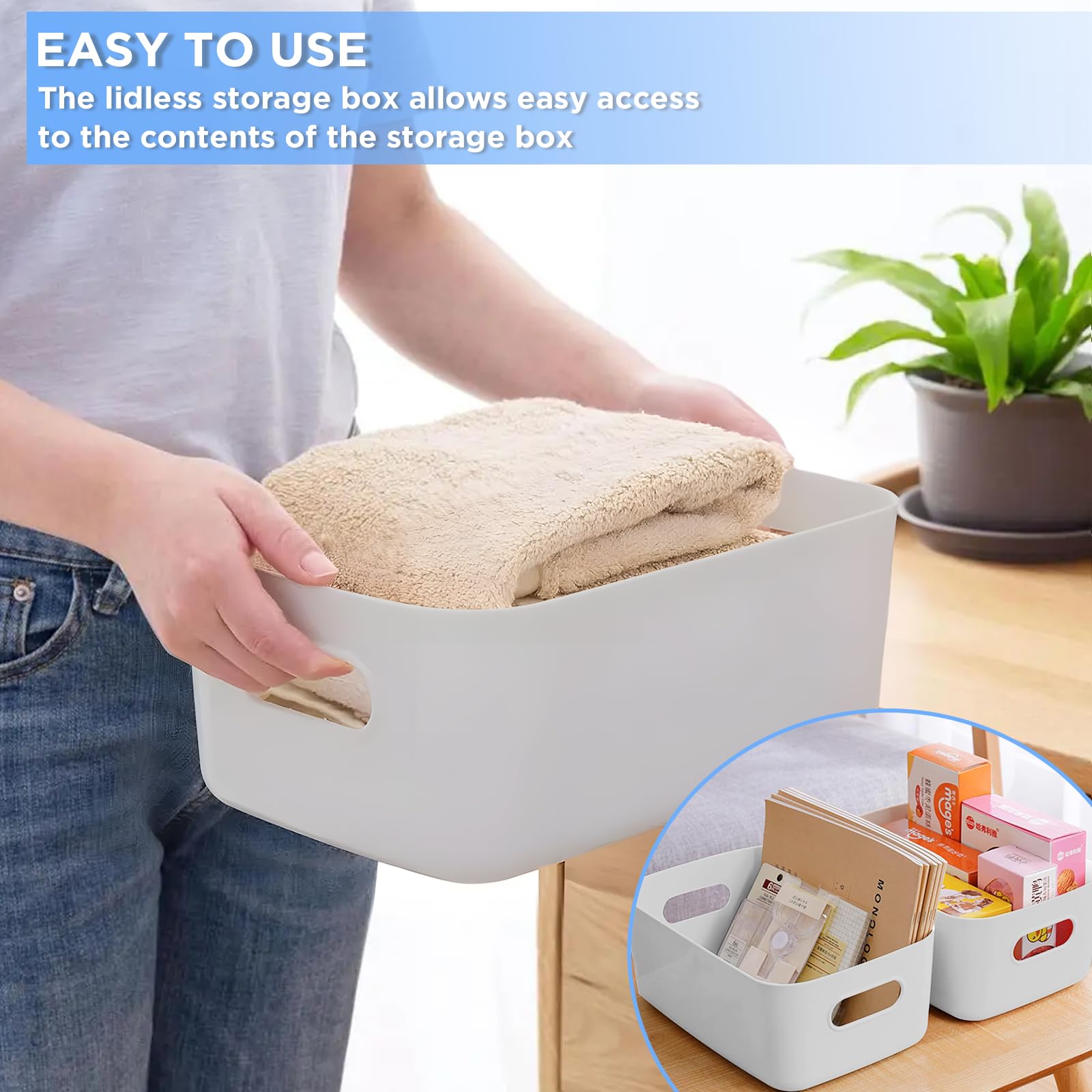 Description du produit 3 Couleur Différentes de Boîte de Rangement en Plastique Trois couleurs pour répondre à vos divers besoins, que ce soit pour un usage domestique ou professionnel, ces boîtes de rangement empilables répondront à vos exigences. Grâce à nos panières et boîtes, gagnez de la place tout en gardant une déco harmonieuse. Disponibles dans différents formats, matières (tissu, osier, plastique…) et coloris, elles s’intègrent facilement dans tous les styles d’intérieur, du plus classique au plus moderne Pratique Pour le Rangement Nos paniers de rangement sont parfaits pour organiser une variété d'articles et vous assurer de les retrouver rapidement lorsque vous en avez besoin. 【12 en 3 Couleurs】Vous recevrez 12 boîtes de rangement comprenant 4 conteneurs blancs, 4 gris et 4 bleus, chacun mesurant 20 cm (longueur) × 14 cm (largeur) × 7 cm (hauteur). 【Utilisation Polyvalente】Parfaites pour organiser les fournitures artisanales, les articles de toilette, les cosmétiques, la papeterie, les câbles, les jouets et autres petits objets, ces boîtes sont un excellent choix pour ranger la maison, les logements étudiants ou les bureaux. Paniers Avec Poignées Tiroirs Boite Rangement Plastique, Paniers Et Boîtes De Rangement, Lot De 6 Lot 12 Bacs Rangement Ils ne sont pas faciles à plier ou à casser lors du stockage d'objets lourds et peuvent être utilisés pendant une longue période sans déformation ni dommage. De plus, 12 étiquettes autocollantes et un marqueur sont inclus pour faciliter l'étiquetage des articles stockés. Adaptées aux salles de bains, cuisines, bureaux, armoires et autres, elles répondent à divers besoins de rangement. Boîte de Rangement Pratique Permet de ranger proprement les blocs de construction et autres petits objets, créant ainsi un espace ordonné et bien rangé. VICDUEKG Lot de 10 boîtes de rangement en plastique pour armoire de cuisine avec poignées - Panier de rangement en plastique pour salle de bain, cuisine, garde-manger (blanc, moyen Évite l'encombrement et le désordre, facilitant ainsi l'accès quotidien et le rangement. LYLIDIA 6Pcs Boîte Rangeent Plastique 30 x 10 x 9.5 c Paniers et...