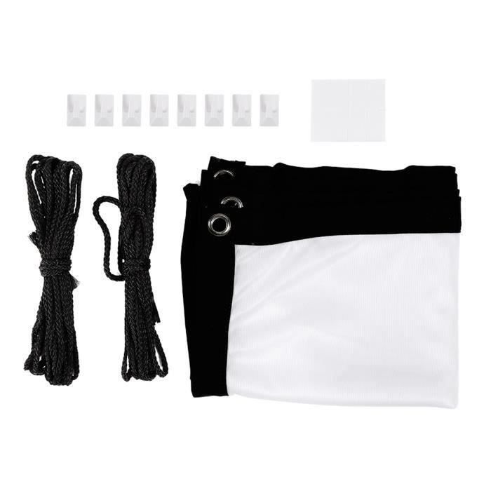 Spécification :Type d'article : écran de projection Condition : neufMatériau : polyesterCouleur : blanc et noirTaille facultative : 40 pouces, 60 pouces, 72 pouces, 84 pouces, 100 pouces, 120 poucesTaille Rapport longueur-largeur Taille visible (cm/po) Bord noir largeur (cm/po) Quantité de trous Accessoire Crochet (8 crochets et gomme arrière) Corde de suspension (2 pièces, 5 m de longueur) 40in 16:9 83x43/32., 7x16., 9 2., 5/1., 0 4 1 1 60 pouces 16:9 140x75/55,1x29,5 3/1,2 4 1 1 72 pouces 16:9 159x90/62,6x35,4 3/1,2 4 1 1 84 pouces 16:9 186x105/ 73,2x41,3 3/1,2 6 1 1 100 pouces 16:9 221x125/87x49,2 3/1,2 6 1 1 120 pouces 16:9 266x149/104,7x58,7 3/1,2 8 1 1Liste des paquets :1 x écran de projection, 8 x crochets8 x morceaux de colle à mucilage2 x corde de suspensionRemarque :1., Si les plis de l'écran de projection ne sont pas importants, vous pouvez tirer les quatre côtés de l'écran en même temps pour le rendre plat ;2., Si les rides sont importantes, vous devez utiliser un fer à repasser pour éliminer les rides ;3., Lors du repassage des plis du rideau avec un fer à repasser, vous devez ajouter une serviette pour éviter tout direct entre le rideau et le fer. 1., Léger et portable, facile à installer avec un crochet à colle mucilage., 2., Pliable, infroissable, facile à transporter et à ranger., 3., Avec des trous autour, pratique à accrocher., 4., Fabriqué en tissu polyester de haute qualité, solide et pour une utilisation de longue durée., 5., Convient pour les films de camping en plein air, le cinéma en plein air, la projection avant et la rétroprojection disponibles. Léger et portable : ce petit écran de projection est facile à transporter et à ranger, ce qui le rend pour les soirées cinéma en camping en plein air ou les événements cinéma en plein air Projecteurs et écrans de projection | Canada Matériau polyester de qualité : fabriqué en tissu polyester de haute qualité, cet écran de projection blanc est solide et pour une utilisation , permettant une projection avant ou arrière en fonction de votre configuration. VIVIBRIGHT mise à niveau écran de projecteur plus ... – Grandado Toile Retroprojecteur Écrans De Projection Blancs, écran De Projecteur Blanc Sans Plis, écran De Projecteur Portable épais 16 écran Projecteur Pliable Sans Plis Utilisation polyvalente] Adapté aux films de camping en plein air et aux cinémas en plein air, les projections avant et arrière sont possibles