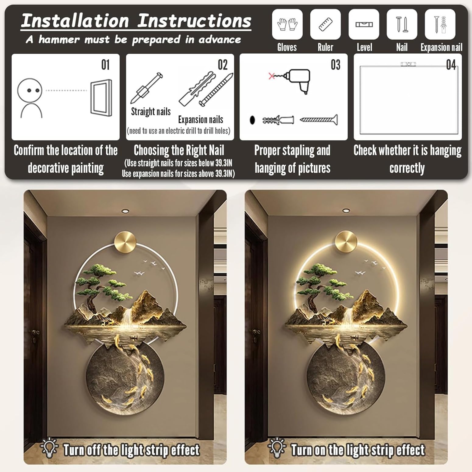 Modern lüks LED duvar Art Deco doğa manzara oturma odası kanepe arka plan mükemm Peinture Décorative Murale YuchiFa Décoration Murale 3D, Sculptures Murales à Suspendre Avec Lumière LED, Lampe De Décoration Murale, Peintures Murales Chinoises Pour La Maison, L'entrée, Le Couloir, La Chambre à Coucher (#3 Led Decoration Murale Une telle peinture de paysage vous apportera le pouvoir de la pleine conscience, changera le champ magnétique de l'espace et vous portera chance. Décoration murale chinoise : cette décoration murale à LED utilise de l'acrylique traité et des matériaux en porcelaine cristal haute définition, associés à un design stéréoscopique 3D. Sculpture murale 3D : la conception stéréoscopique 3D confère au mur un impact visuel sans précédent. Décoration murale à LED - Décoration murale 3D - En relief - Feng Shui - Lampe décorative à suspendre pour salon, entrée, couloir (gris, 60 x 90 cm C'est le meilleur choix pour la décoration de votre maison. Premium AI Image | 3d art mural flowers abstract wallpaper rose golden... L'eau qui coule symbolise la richesse et le cerf symbolise la longévité et la bonne fortune. Peinture LED : la peinture murale d'art intègre une bande LED à économie d'énergie, l'effet lumineux est doux et non éblouissant et aucun stroboscopique visuel visible.