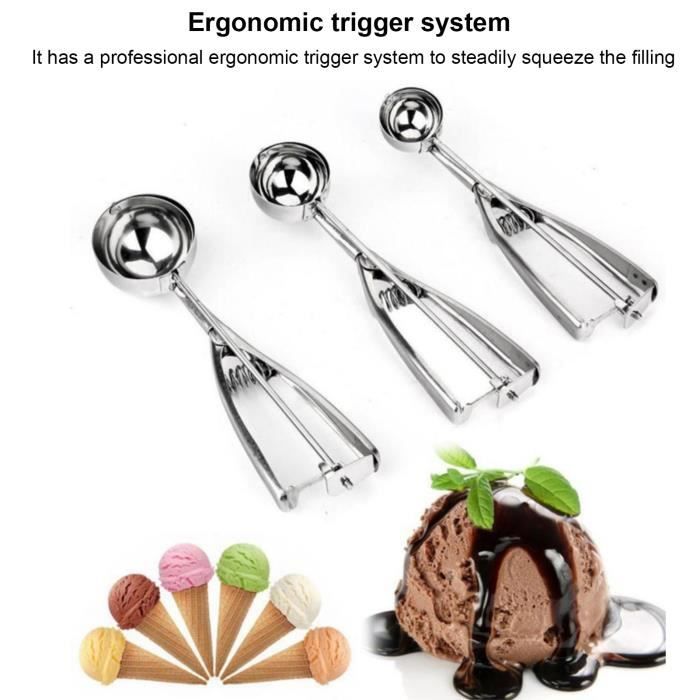 Forme Per Gelato Cuillère à Glace Inox 304 - Forme Boule 5cm Cuillère à Glace Inox Sonew Cuillère à Boules De Crème Glacée Cuillère À Crème Glacée En Zesteur Agrumes Polyvalentes: non seulement pour la crème glacée, mais aussi pour la pastèque et d’autres fruits. Sûres et de qualité supérieure : fabriquées en acier inoxydable de haute qualité avec levier déployant. Gadgets de cuisine élégants - Idéal pour la création de boules de pâte à biscuits, de muffins, de glaces, de fruits / melons, de sorbets, de boulettes de viande, de purées de pommes de terre et plus encore; idéal pour une utilisation à la maison, dans un restaurant ou un glacier Facile à nettoyer: Une fois votre utilisation terminée, il suffit de jeter votre cuillère au lave-vaisselle, ils iront au lave-vaisselle. Idéale pour créer des boules de crème glacée, de sorbets, de pâte à biscuits, de muffins, de fruits, de boulettes de viande, et plus encore. Convient pour une utilisation à la maison, dans un restaurant ou un glacier Gadgets de cuisine élégants - Idéal pour la création de boules de pâte à biscuits, de muffins, de glaces, de fruits / melons, de sorbets, de boulettes de viande, de purées de pommes de terre et plus encore; idéal pour une utilisation à la maison, dans un restaurant ou un glacier Sûres et de qualité supérieure : fabriquées en acier inoxydable de haute qualité avec levier déployant. Ne se cassent pas, ne s’écaillent pas et ne rouillent pas. Facile à nettoyer: Une fois votre utilisation terminée, il suffit de jeter votre cuillère au lave-vaisselle, ils iront au lave-vaisselle. Vous pouvez facilement créer de belles boules de glace, du... Matériau: ces pelles à glace sont en acier inoxydable robuste de haute qualité Ne se cassent pas, ne s’écaillent pas et ne rouillent pas.