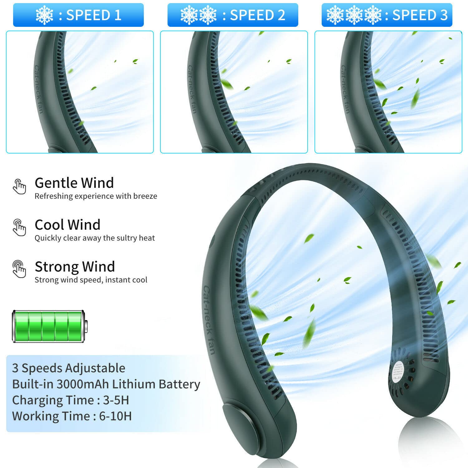 Spécifications: Type de batterie: Batterie Lithium-ion Capacité de la batterie: 3000mAh Durée d'utilisation: 3 à 5 heures Temps de charge: 3 - 4 heures Le forfait comprend: 1x ventilateur de cou suspendu sans pales 1x câble de chargement USB Conseils d'utilisation: Vous feriez mieux de charger pendant plus de 2 heures avant de l'utiliser pour la première fois. Petit comme un téléphone, vous pouvez facilement garder ce mini ventilateur à main au bureau, en déplacement ou à la maison sans prendre beaucoup de place Un bouton peut allumer/éteindre; appuyez plusieurs fois sur le bouton pour changer la vitesse du vent en faible/moyen/élevé, le voyant se transforme en lumière bleue. 【Vitesse du Vent à 3 Vitesses et Faible Bruit】 Le mini ventilateur portable dispose de trois vitesses de vent réglables : faible/moyen/élevé, et le fonctionnement est simple. 【Compagnon D'été】Le mini ventilateur usb est votre meilleur choix pour les activités de plein air telles que le refroidissement personnel, Il peut être utilisé dans diverses occasions telles que le métro, la cuisine, , la cuisine, les travaux ménagers, le sport, les voyages, le sommeil, le bureau, le camping, etc, compatible avec tous les périphériques de sortie USB. Ventilateur De Cou Portable Ventilateur De Table Portable Pliable Rechargeable à 3 Vitesses - Vert - | Vente En Ligne Électroménager - Cuisine - Maison - Electronique - Téléphonie Ventilateur Rechargeable 【Ventilateur Portable Sans Pale 】 Le dernier design de mode améliore les défauts des ventilateurs traditionnels et adopte un design unique sans lame, de sorte que vous n'avez pas à vous soucier des cheveux coincés dans le ventilateur et des blessures. La conception à un bouton peut être commutée à volonté en appuyant sur le bouton. Le ventilateur nuque peut être tourné de manière flexible à 360 °, vous permettant de trouver la direction du vent la plus appropriée. Nos ventilateur cou vous permettent de profiter des étés frais à tout moment, n'importe où. Generic Mini Ventilateur De Sol Télescopique Pliant - Ventilateur Rechargeable USB - Prix pas cher | CI 【Sûr et Silencieux】:Le moteur sans balais turbocompressé fournit un flux d'air puissant et un faible bruit pour le ventilateur sans pale, la conception sans lame résout le problème des cheveux emmêlés et est également sans danger pour les enfants et les animaux domestiques. Vent Environnant à 360 °] Un flux d'air silencieux et puissant refroidit tout votre cou et votre visage, confortable sans souffler directement. Le ventilateur nuque peut être tourné de manière flexible à 360 °, vous permettant de trouver la direction du vent la plus appropriée