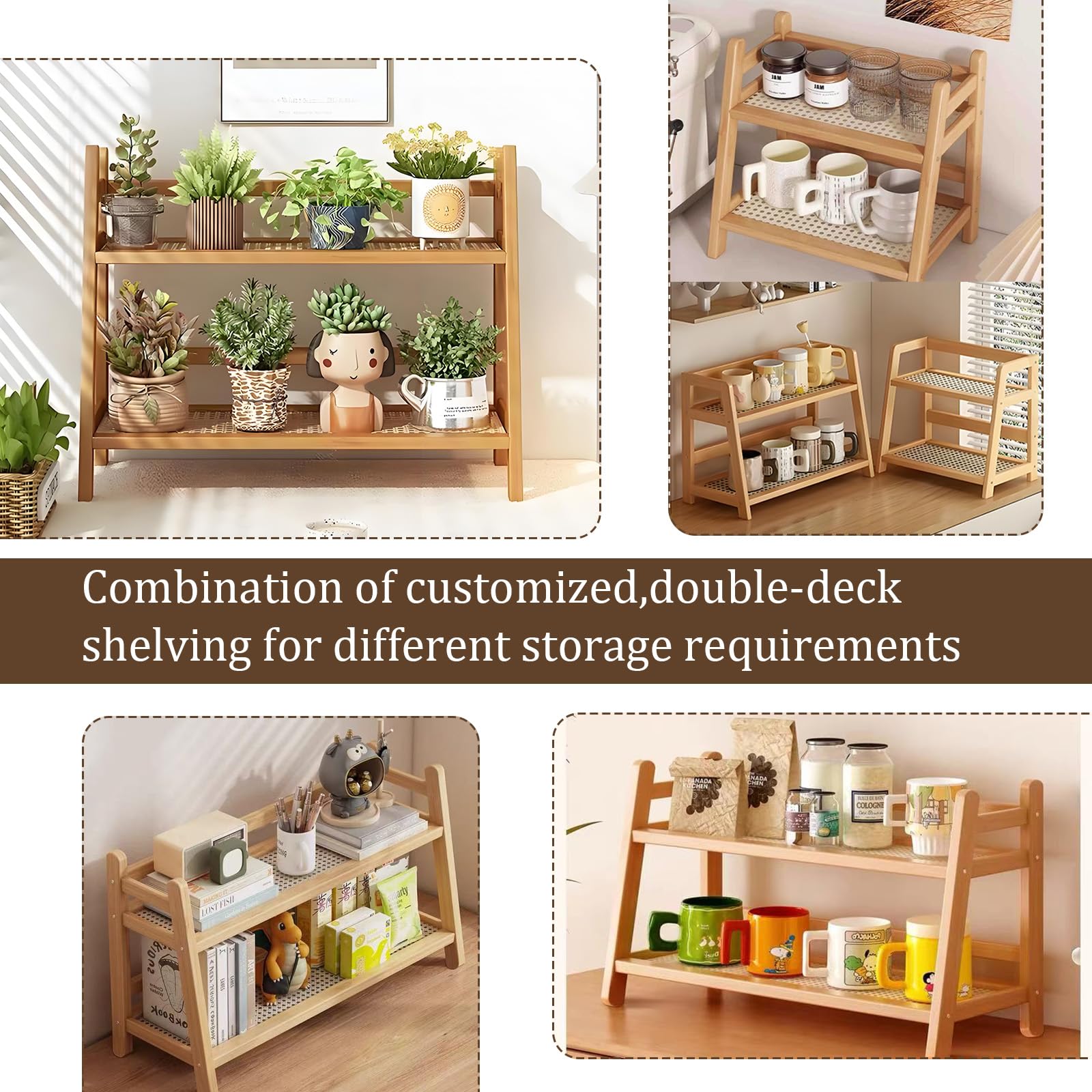 Contenu : 1 porte-gobelet en rotin double couche Ses tons chauds et organiques apportent une touche de nature à votre cuisine ! Cet organisateur astucieusement conçu peut non seulement être utilisé comme étagère à épices, mais aussi pour ranger des dosettes de café, des sachets de thé et d'autres petits objets. Polyvalent : l'organisateur de cuisine dispose de deux niveaux sur lesquels vous pouvez ranger des couverts, des fruits ou même une boîte à thé dans la salle de bain ou au bureau, offrant ainsi beaucoup d'espace pour votre collection culinaire. Facile à utiliser : l'étagère décorative de cuisine a un design vertical qui facilite l'accès à vos articles quotidiens tels que le lait ou le sirop. étagère à épices Debout Étagère à Ustensiles De Cuisine, étagère à Ustensiles Et Couverts En Bois, étagère à épices Prise Plan De Travail Cuisine Design élégant : l'étagère de cuisine a un design blanc crème mi-siècle et un élégant treillis imitation bambou et rotin, ce qui est parfait pour présenter des tasses, des pots à épices et des cafetières dans la cuisine, la salle de bain ou le bureau. Apportez de l'ordre et de l'élégance à n'importe quelle pièce avec cette petite étagère verticale polyvalente qui peut être utilisée pour un bureau, des ustensiles de salle de bain ou du matériel de bricolage. Accès facile, peu encombrant, plus d'efforts pour obtenir des choses, même si elle est plus profonde, elle est toujours à portée de main. Le design simple et minimaliste apporte élégance et rustique à n'importe quel endroit de votre maison. Cet organisateur de cuisine à 2 étages en bambou imitation rotin est conçu pour apporter une touche d'élégance rustique à votre intérieur. Avec son design tissé et son aspect bambou chaud, il constitue un élément décoratif attrayant pour la cuisine Description du produit : Cette belle étagère double en bambou naturel allie confort moderne et charme rustique. Il suffit de l'essuyer avec un chiffon humide pour préserver la beauté naturelle du bambou et en profiter longtemps. Étagère à épices verticale : notre étagère à épices en bois à deux étages vous permet de voir ce dont vous avez besoin en un coup d'œil et de garder les choses organisées et bien rangées. Le double rangement vous aide à garder votre bureau propre et bien rangé tout en créant de la place pour vos objets préférés Vous pouvez ajouter une touche personnelle à l'étagère en y plaçant de petites plantes en pot ou des livres décoratifs. Organisateur de cuisine à 2 étages en bambou imitation rotin - Décoration de cuisine, étagère à épices, étagère de cuisine, organisateur de thé, porte-tasses, pour salon, bureau (couleur bois Organiseur Etagère de cuisine 2 Niveaux en Bambou - Five MATÉRIAU DE QUALITÉ SUPÉRIEURE : l'organisateur de cuisine est fabriqué en bambou robuste et imitation rotin stratifié ABS tressé, ce qui garantit que vos aliments (comme les dosettes de café et les épices) sont non seulement organisés, mais aussi placés avec style tout en améliorant l'ambiance de votre environnement.