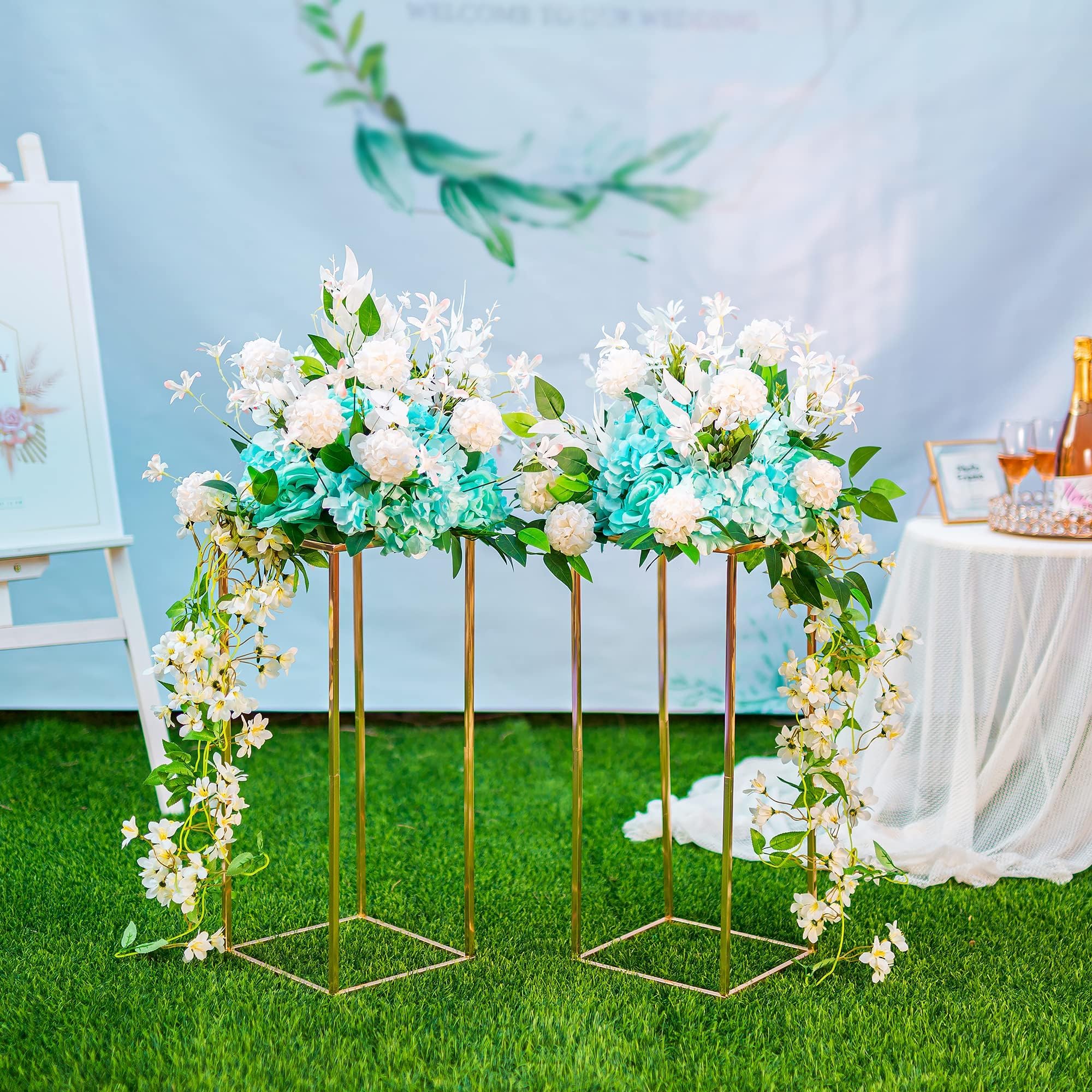 Affichage stable : la structure rectangulaire assure plus de stabilité, et la grande base (9,44 x 9,44 pouces) permet de transporter jusqu'à 11 livres (chaque PCS) de fleurs exquises ou d'autres décorations pour assurer le bon déroulement de vos activités importantes. Inweder Lot de 2 supports de fleurs dorés pour table Le pack de 10 pièces fait 60 cm de haut, en fer doré solide, avec une base triangulaire en plastique pour une stabilité de ouf (ils supportent jusqu'à 10 kg Bricolage amusant : la conception creuse offre plus d'espace pour montrer votre imagination et votre créativité. Lot de 10 pièces : un ensemble de dix pièces peut répondre à vos besoins à la fois, de sorte que vous pouvez compléter différentes tâches de décoration pour les fêtes, les banquets et les cérémonies en une seule consommation ! Centres de table de mariage dorés de 60 cm pour décoration de table – 10 pièces de haut support de fleurs géométriques, vases de sol en métal... (non inclus), créant ainsi un fond unique. En tant qu'accessoire et support d'affichage, il créera facilement une atmosphère élégante et romantique ! Décoration Mariage Et Fête Lot De 10 Supports De Fleurs Dorés Pour Centre De Table, Décorations De Support Pour Centre De Table
