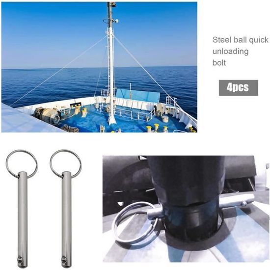 【Utilisation 】Standard goupille dégagement rapide, lignes lisses, goupille d'arrêt rapide facile et sûre à tenir en main, facile à installer et à enlever, facile à utiliser et à contrôler. Goupille à ressort à partir de 1,50 € achat | SVB Construction solide avec bille à ressort direct offrant des caractéristiques de fonctionnement fiables. Matériau : toutes les pièces sont en acier inoxydable 316, qui présente une excellente résistance à l'eau de mer et est durable Caractéristiques: Matériau: 316 en acier inoxydable Taille: 6,3 * 51 mm / 6,3 * 76 mm Poids: 18g / 23g Méthode d'emballage: Sac OPP Liste de colisage: 4 x broches Largement utilisé dans divers bâtiments navals, équipement des navires. 2 Goupilles De Verrouillage à Ressort En Acier Robuste, Serrure De... 【Inclus】 il y a 4 broches à dégagement rapide, entièrement équipées, faciles à remplacer, usées ou endommagées, pour répondre aux besoins de remplacement de différents projets. Caractéristiques: Fabriqué en acier inoxydable Marine Grade 316, très dur et résistant à la corrosion. Goupilles Pour Charnières Pont 6pcs Goupilles à Dégagement Rapide Goupille De Verrouillage 8mm Avec Extrémité à Boule à Ressort Accessoires De Verrouillage, Matériel Marin, Diamètre | Leroy Merlin Goupille à Ressort Marine Acier Inoxydable