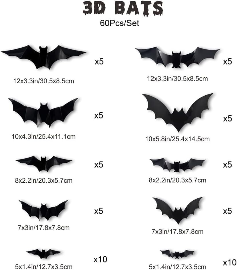 【Matériaux de Haute Qualité】 Ces décoration 3d chauve souris sont fabriquées en plastique de haute qualité. Désolés, nous n'avons pas pu traduire cette fiche produit en français. 120 pièces 3D chauve-souris Halloween décoration autocollants pour la décoration intérieure 4 tailles imperméables noires effrayantes chauves-souris pour décalcomanies de chambre sûres, non toxiques, imperméables, durables et résistantes aux intempéries, elles conviennent à une utilisation en intérieur comme en extérieur. faciles à retirer, ils ne laissent aucun résidu ni n'abîment le mur, ils conviennent donc à une utilisation en intérieur comme en extérieur. elle est parfaite pour créer une ambiance effrayante lors des fêtes d'halloween, des célébrations précédant halloween ou d'halloween. Lot 120 Stickers 4 Tailles 120 Pièces Décoration Murale De Chauve-souris Pour Halloween, Grandes Chauve Souris Halloween résistantes à la décoloration et aux déformations, elles sont réutilisables pour de nombreuses fêtes et événements, vous permettant ainsi de réaliser des économies. 【Contenu de L'emballage】 Nos effrayant réaliste chauve souris sont disponibles en quatre tailles : 60 feuilles de 9 cm x 2 cm, plus 20 feuilles de 16 cm x 4 cm, 12 cm x 3 cm et 8 cm x 4 cm, soit un total de 120 autocollants chauve-souris, de quoi décorer halloween en toute sérénité. 【Utilisations Polyvalentes】Cette décoration murale de chauves-souris d'halloween peut être appliquée sur presque toutes les surfaces lisses, qu'il s'agisse de murs, de fenêtres, de portes, d'armoires ou d'appareils électroménagers. vous pouvez ensuite appliquer le motif où vous le souhaitez. Halloween Decoration Exterieur 120 Pièces 3D Chauve Souris Decoration Halloween leurs ailes peuvent être pliées à différents angles pour créer un effet effrayant ; même au vent, elles prennent vie. Transformez n'importe quel espace en un repaire effrayant avec ces chauves-souris réalistes en PVC de haute qualité. Cet ensemble massif de 120 pièces vous permet de créer une décoration dynamique et rafraîchissante sur vos murs, vos fenêtres ou même le miroir de votre salle de bain