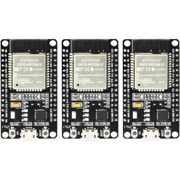 L'utilisateur peut couper la puissance de la CPU et utiliser le coprocesseur à faible puissance pour surveiller en permanence l'état des périphériques ou si certaines des valeurs analogiques dépassent le seuil. Esp32 Wroom Carte De Développement ESP32 CH9import X WiFi + Bluetooth Ultra-faible Wifi Deauther Caractéristiques : - Puce USB à TTL stable CP2102 intégrée pour assurer la communication normale du port série. Soutenir 3 modes: AP, STA, et AP + STA. Forte fonction avec le protocole LWIP de soutien, Freertos. Le ESP32 est un module polyvalent Wi-Fi + BT + BLE MCU puissant, polyvalent et pouvant être utilisé pour les réseaux de capteurs à faible puissance et des tâches exigeantes telles que le codage vocal, le streaming audio et le décodage MP3, etc. ESP32 intègre également une grande quantité de périphériques, y compris des capteurs tactiles capacitifs, des capteurs Hall, un capteur à faible bruit, une interface de carte SD, une interface Ethernet, SDIO / SPI haute vitesse, UART, I2S et I2C. 32s Aubess ESP32 Carte de développement WiFi + compatible Bluetooth - Support du système Windows (environnement de simulation cygwin et msys32) et du développement du système Linux - Supporte le protocole LWIP, freertos - Prise en charge du téléchargement automatique, il n'est pas nécessaire de basculer manuellement le téléchargement et le mode d'exécution. IMPORTANT : uniquement compatible avec la carte de dérivation esp32 à 30 broches, (https://www., amazon., fr/dp/B0BNWSR855). La puce à double mode Wi-Fi plus Bluetooth 2.4GHz est fiable, évolutive et adaptable. Deux cœurs de CPU peuvent être contrôlés ou alimentés individuellement Un micro-contrôleur ESP32 très puissant. - Support ESP32-Arduino - Prise en charge de trois modes: mode de coexistence AP, STA, AP + STA - La fréquence d'horloge est réglable de 80 MHz à 240 MHz. - Rapport performance / prix élevé. -Petit volume, facilement intégrable à d'autres produits. Deux cœurs de CPU peuvent être contrôlés ou alimentés individuellement.