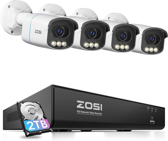 Avec la prise en charge de connexions utilisateur multiples, vous pouvez partager la vue de la caméra avec votre famille. ZOSI Sistema de cámara PoE de seguridad 4K con audio, NVR H.265+ de 8 canales co Détection intelligente et alarme pour une sécurité améliorée]Grâce à l'algorithme d'IA, ce kit de caméra PoE détecte avec précision les personnes et les véhicules et active la sirène et le projecteur intégrés pour dissuader l'intrus Grâce à la détection de mouvement, vous recevrez des notifications push instantanées et des e-mails pour éviter les dangers potentiels. Découvrez une clarté ultime et une visibilité améliorée avec notre technologie avancée. Un boîtier étanche avec un indice d'étanchéité IP66 permet à vos caméras super HD de fonctionner efficacement à l'intérieur comme à l'extérieur. Vous pouvez non seulement voir les vidéos en 4K, mais entendre aussi clairement et parler aux gens devant la caméra directement depuis l'application. 【Système de caméra extensible à 32CH】- Il s'agit d'un NVR PoE 16 canaux en 8MP, qui vous offre la possibilité d'ajouter au maximal de 8 caméras supplémentaires. Détection Intelligente Grâce aux algorithmes d’IA, les personnes les visages et les véhicules sont reconnus avec précision. NVR 16 Ports Avec Détection IA ZOSI 32CH 4K Kit Caméra Surveillance Extérieure PoE | FindTheDeal Kit Caméra Surveillance 4k Poe En tant que fournisseur de solutions de sécurité de confiance, nous chiffrons tous les enregistrements enregistrés pour protéger votre vie privée. Système de caméra extensible à 32CH]- Il s'agit d'un NVR PoE 16 canaux en 8MP, qui vous offre la possibilité d'ajouter au maximal de 8 caméras supplémentaires. [Détection intelligente et alarme pour une sécurité amélior... Économie de l'espace stockage , H. Avec un disque dur sécurisé de 4 To intégré, vous pouvez compter sur lui pour des enregistrements fiables toute la journée. 1 Détection de l'IA 2 Zone de Détection 3 Alerte Sonore & Lumineuse 4 Accès à Distance Il est pratique pour vous de trouver rapidement les vidéos de surveillance que vous voulez lire en recherchant par temps, événement ou image. Il peut accueillir jusqu'à deux disques durs de 6 To (non inclus). Chaque fois qu'un événement de mouvement est détecté, vous recevrez des alertes push instantanées via l'application et des notifications par e-mail. [Ultra HD 4K et vision nocturne en couleur] Ce capteur d'image CMOS 4K incroyable permet à la caméra de capturer plus de lumière, ce qui se traduit par une amélioration de la couleur, du contraste et des performances en faible luminosité. Double Défense contre les Intrus En cas d'activité suspecte, la caméra intelligente déclenche les projecteurs et la sirène d'alarme.