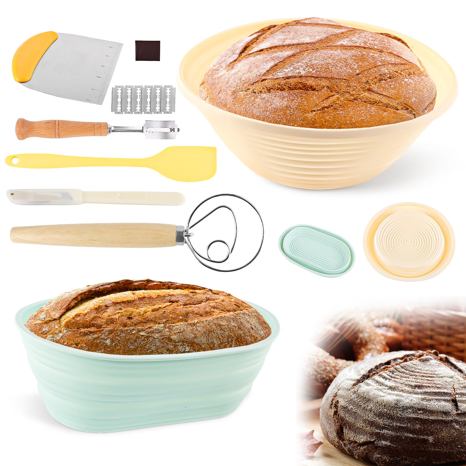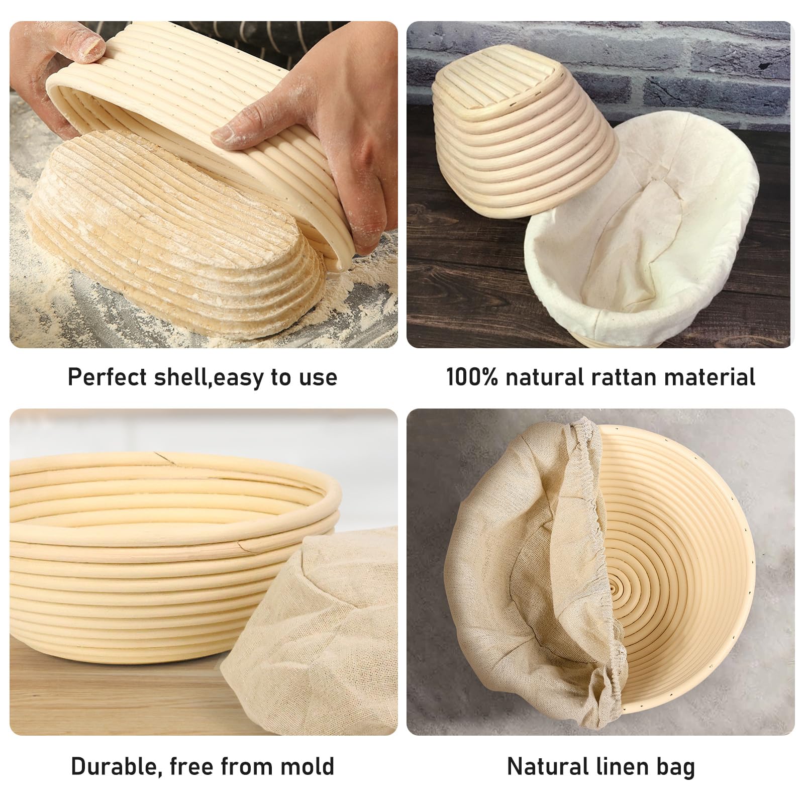 Set de 2 Banneton pour Pain, Set de Paniers de Cuisson, Banneton Panier D'Épreuvage Set, Accessoires de Cuisson a Pain, pour la Pâtisserie Domestique et Professionnelle, avec Couteau de Boulanger : : Cuisine et MaisonÀ propos de cet article Matériel ▶ Notre Banneton pour Pain est très complet avec des accessoires, exquis et pratique, un cadeau de cuisine idéal pour les ménagères, les sœurs et les amis. Accessoire Boulanger Set De 2 Banneton Pour Pain, Set De Paniers De Cuisson Bread Proofing Basket ▶ Le Banneton pour Pain aide à maintenir la forme du pain et évacue également l'humidité de la surface de la pâte, facilitant ainsi la découpe. Durable : Banneton pour Pain Surface lisse et sans éclats, vous n'avez pas à vous soucier de vous blesser les mains, Banneton pour Pain La conception pliable le rend facile à ranger et à transporter Cadeau pour les amateurs de pâtisserie : notre Banneton pour Pain est très complet avec des accessoires, exquis et pratique, cadeau de cuisine idéal pour les femmes au foyer, les sœurs, les amis et les amateurs de pâtisserie, etc. Qiilu Panier à pain Banneton Brotform pain épreuvage produits de... Ashata Panier de Banneton Kit de cuisson de pain de pâte de panier d ▶ Ce Banneton pour Pain au pain au levain, mais aussi à la pâte à pizza, aux bagels et autres produits de boulangerie. Facile à utiliser: nos Banneton pour Pain sont antiadhésifs et respirants, maintiennent la forme du pain et absorbent l'humidité de la pâte, ce qui les rend plus rapides, ce qui facilite la coupe et rend la croûte plus croustillante. ▶ Le Banneton pour Pain est facile à nettoyer et à ranger, adapté aux boulangers professionnels comme aux amateurs à domicile.