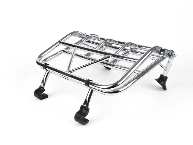 équipement Transport Vespa Pratique Fixation Ventouses Style Porte-Bagages Avant Pliable Chromé Pour Vespa Primavera 50/125cc - Fixation Par Ventouses Décoratif Chromé Primavera Support Bagages Avant Transport Léger Porte-bagages avant pliable pour Vespa Primavera et Sprint, adapté pour 50, 125, 150 cc, en chrome par PIAGGIO Découvre la liberté que t'offre le porte-bagages original Vespa chromé pour ta Vespa Primavera, Sprint ou Elettrica. Découvre la sensation de transporter tout ce qui est important en toute sécurité et avec style, que ce soit pour le trajet quotidien vers le travail ou pour une sortie de fin de journée avec des amis Couleur : chrome // Type de produit : porte-bagages // Garantie du fabricant : 2 ans // Position de montage : avant // Type de vélo : scooter // Numéro de fabricant : 103665 // Pays et région de fabrication : Chine Porte-bagages Sprint 125cc Porte-bagages Avant Vespa Primavera/Sprint - Style Rétro Chromé Pour Modèles 50-125cc à Partir De 2013 - Kit Complet De Montage Montage Sans Perçage