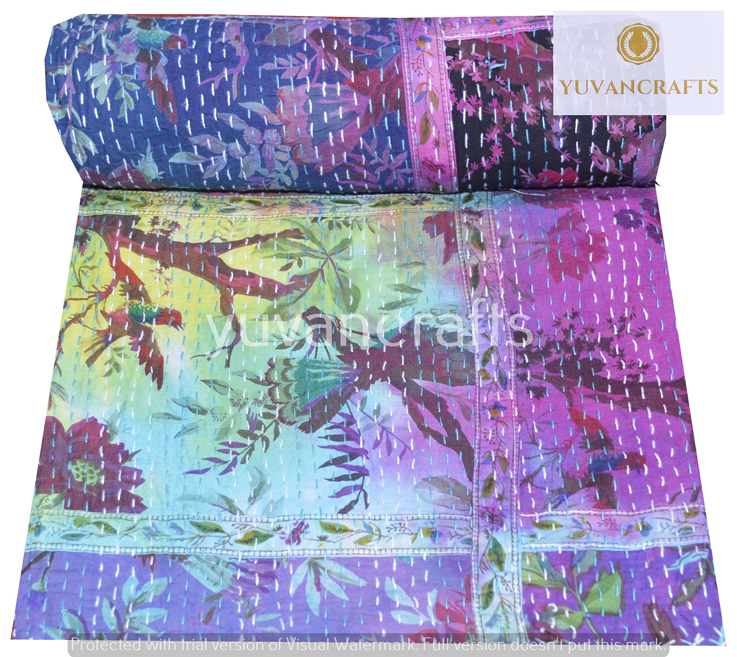 L'ensemble de la couette est brodé à la main avec un nombre final de points droits pour créer un produit unique, unique en son genre. Une belle création pour donner à votre maison un look coloré traditionnel mais authentique avec cette belle couverture ou couvre-lit Kantha qui peut également être utilisé comme couvre-lit Kantha tropical fait main. Cette pièce d'art est entièrement cousue à la main par des artisans du Rajasthan, en Inde. Couvre-lit Broderie Main Artisanat YUVANCRAFTS Couvre-lit Indien Vintage Patchwork Double En Coton Kantha Couverture Gudari Décoration Ethnique Tissage YUVANCRAFTS Couvre-lits: acheter en ligne. Top-Marques prix bas dernières tendances Yuvancrafts Colcha tradicional india Kantha pesada de algodón puro... Yuvancrafts Gudari Couvre-lit double en coton Kantha Imprimé floral indien
