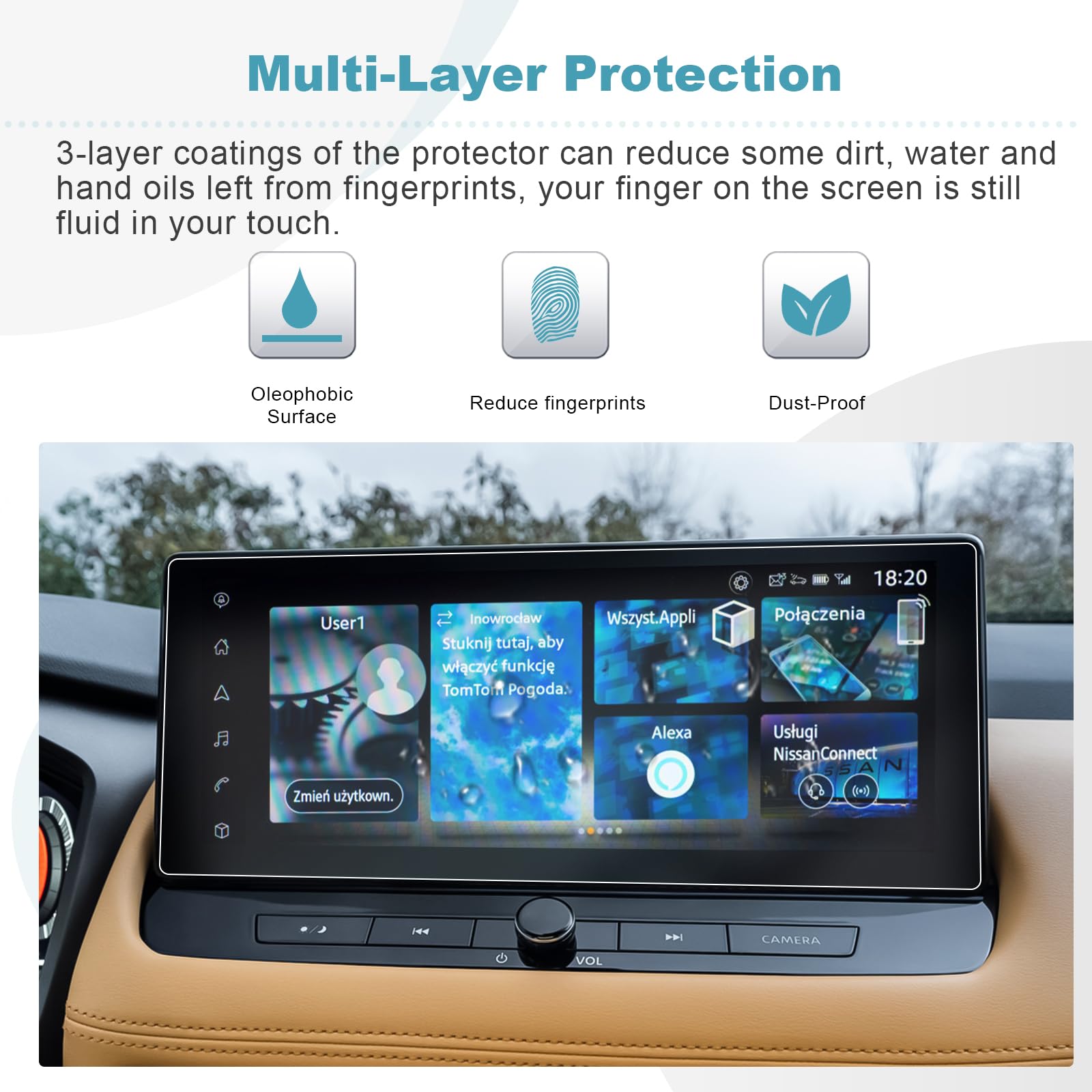 Dureté 9H - Fonction de protection de qualité supérieure. Cela permet au conducteur d'accéder facilement aux systèmes de navigation, à la lecture de musique ou à d'autres applications sans compromettre la visibilité. [Compatibilité] : Spécialement compatible avec Nissan Qashqai J12 e-Power / 2022+ x-trail T33 e-Power 12,3 pouces NissanConnect infotainment écran tactile Navi 2021 2022 2023 2024 2025 L'installation du film en verre trempé est rapide et facile. Le film en verre trempé antireflet LFOTPP AG offre de nombreux avantages qui augmentent à la fois la fonctionnalité et le confort d'utilisation du véhicule. [Contenu de la livraison] : 1 film de protection d'écran, 1 outil auxiliaire (ventouse en plastique, autocollant anti-poussière, chiffon de nettoyage en microfibre). Le film en verre trempé a une dureté élevée et peut protéger efficacement contre les rayures et les dommages. [Installation facile] : le protecteur d'écran pour radio de navigation LFOTPP dispose de fonctions d'adsorption automatique lors de l'installation sans laisser de bulles d'air. Même les objets durs ou les contacts accidentels pendant la conduite n'endommageront pas le film. Ne blesse pas facilement les doigts. Film Anti Reflet Auto Film De Protection D'écran En Verre Trempé Pour Nissan Qashqai J12 X-trail T33 E-POWER 2022 -2024 2025 12.3 Pouces, Navigation Gps LCD Pour Voiture Film Anti Reflet Extérieur 1 protection d'écran en verre trempé (indice 9H 0,26 mm). Lingette imbibée d'alcool, chiffon en microfibre, ruban anti-poussière, ventouse en plastique [Anti-explosion] : l'effet anti-explosion avancé ne provoque pas de fragmentation et de dommages au corps humain et à l'écran de navigation de la voiture, même si le film d'écran est cassé, il reste toujours intact. Upscreen Reflection Shield Matte Premium Protection d'écran mat minimise reflets de lumière sur votre écran et empêche les empreintes digitales et les taches dues au revêtement anti-trace. Mat e Anti-Reflets La surface du protecteur est mat et réduit ainsi les réflexions gênantes sur votre display. Forte Protection Anti-Rayures Le nouveau revêtement anti-rayures développée de votre... S'il y a de petites bulles, elles peuvent être retirées avec les doigts ou un grattoir. [Réduction de l'éblouissement augmente la visibilité] : le revêtement anti-reflet (AG) sur cette protection d'écran réduit considérablement l'éblouissement provenant des sources de lumière externes, améliore la visibilité et réduit la fatigue oculaire. L'absorption automatique facilite l'installation, il suffit de toucher doucement le doigt pour la terminer. SHAOHAO compatible avec Nissan Qashqai J12 2022-2025 / Nissan Juke F16 Facelift 2024 12,3 Film de protection d'écran en verre trempé Nissan Juke Nissan Qashqai La dureté 9H empêche votre écran de se briser à partir de zéro, offrant une protection complète., Installation facile. La surface mate du film empêche les traces de doigts et autres salissures de coller. Il donne également une sensation tactile luxueuse et sûre. Modèle compatible : Compatible avec Nissan Qashqai J12 e-Power 2021 2022 2023 2024 2025 2025 / 2022+ x-trail T33 e-Power 12,3 NissanConnect infotainment navi écran tactile.
