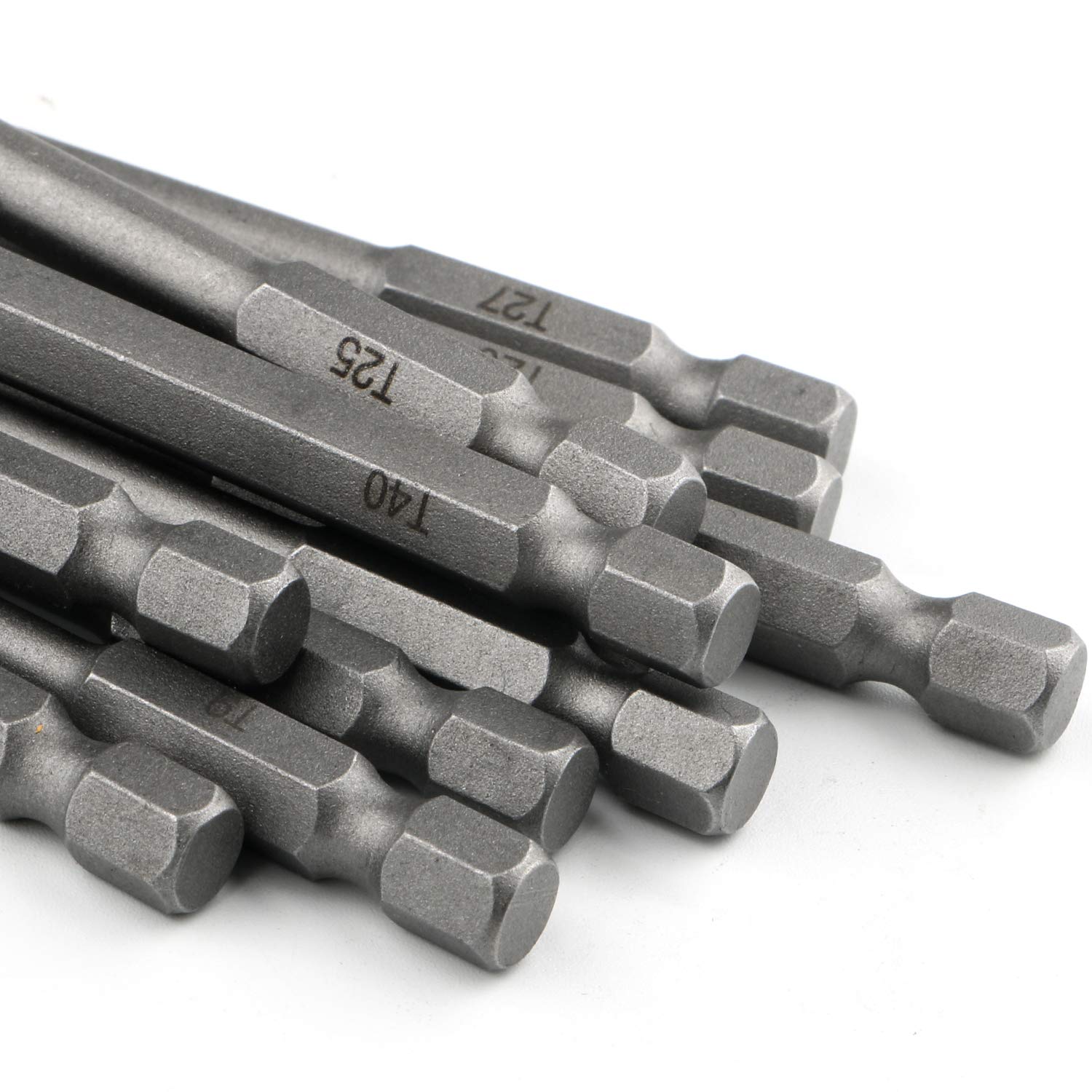 Ces embouts magnétiques attirent les vis. Ils peuvent être utilisés avec des tournevis manuels, des visseuses électriques ou des perceuses électriques. Cet article Type de tige : 6,35 mm / 1/4 Hex Longueur totale : 75 mm. Embout Torx Embouts De Tournevis Torx Magnétiques - FEBEST - Lot De 11 Embouts Hexagonaux 1/4 Pouce Magnétique Jeu d'embouts de tournevis magnétiques Torx T6 / T7 / T8 / T9 / T10 / T15 / T20 / T25 / T27 / T30 / T40 Description : ► Aimant puissant, bonne finition, haute précision. Longueur de 75 mm, vous pouvez probablement aller partout. Type de tige : 6,35 mm / 1/4 Hex, embout long magnétique dans l'installation peut facilement aspirer les vis, tournevis électrique, tournevis manuel, perceuse électrique, outils généraux. Embouts magnétiques, grâce à l'aimantation, les vis adhèrent également à l'embout et surtout dans les trous plus profonds, il n'est pas nécessaire de retourner l'objet ou de secouer l'objet pour que la vis sorte, ce qui améliore votre efficacité de travail Embouts de tournevis de sécurité Torx 1/4MM TR6 embouts d'outils ouverts pour to Caractéristiques : Matériaux : acier allié S2 Type de tête : torx. Embouts magnétiques, grâce à l'aimantation, les vis adhèrent également à l'embout et surtout dans les trous plus profonds, il n'est pas nécessaire de retourner l'objet ou de secouer l'objet pour que la vis sorte, ce qui améliore votre efficacité de travail. ► Matériau dans le matériel de haute dureté.