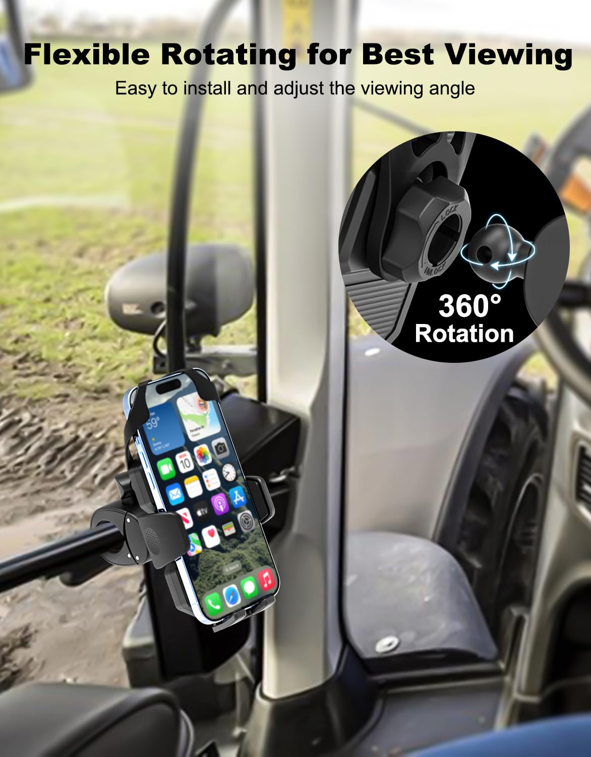 Support de téléphone portable pour voiture, grands camions, antichoc, supports spéciaux pour téléphone portable, Navigation sur véhicule, pelle, camion Maintien ferme : fixez votre téléphone aux mains courantes de vos véhicules lourds en toute sécurité et facilement. Support Téléphone Camion Tracteur Support De Téléphone Pour Camion, Pince De Support De Téléphone Support Véhicule Professionnel Matériau du produit : ABS Dimensions du produit : voir photo. Installation facile : avec la fonction d'installation simple de notre support de téléphone pour camion, vous pouvez facilement basculer entre les véhicules et les environnements de conduite. Évite les rayures : avec des coussinets antidérapants, le support épouse étroitement votre appareil, empêche les rayures, conserve son aspect impeccable tout en assurant la stabilité RAM MOUNTS mycket flexibla och individuella. Les systèmes de support RAM MOUNTS sont très sophistiqués. Elaborés pour les tablettes, les téléphones et ordinateurs portables. Les produits de la série RAM MOUNTS représentent un moyen de montage flexible et sûr dans votre véhicule. Divers connecteurs et socles permettent une combinaison individuelle. De plus, la gamme étendue propose... Accessoires pour telephone portable - Accessoires de cabine Contenu : 1 support de téléphone pour camion Notre support de téléphone pour camion a été spécialement conçu pour résister aux conditions difficiles et maintenir votre téléphone en place en toute sécurité sur les grands camions, chariots élévateurs et véhicules de chantier Caractéristiques : conception de coussin antidérapant, quatre coins enveloppés et ne tombe pas facilement Champ d'application : colonne ou accoudoir de camions, chariots élévateurs, bulldozers, véhicules de construction et véhicules tout-terrain.