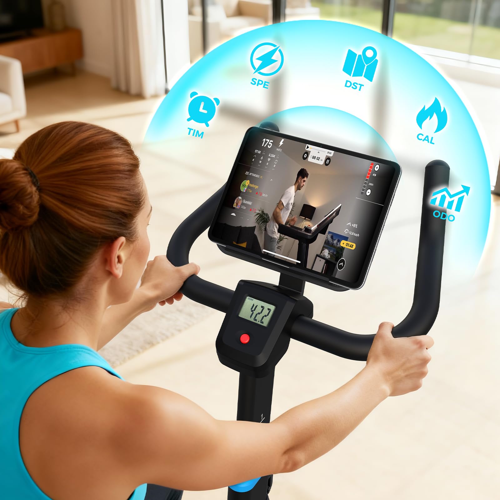 Idéal pour débutants comme pour sportifs confirmés. Niveau sonore inférieur à 20 dB : pédalez tôt le matin ou tard le soir sans réveiller les enfants ni déranger les voisins. Test du vélo d'appartement : résistance infinie et confort silencieux Le vélo d'appartement HXD-ERGO combine tout ce qui fait un entraînement moderne à la maison : une technologie silencieuse avec sangle et commande magnétique qui ne dérange pas les voisins et la famille, connexion intelligente avec Zwift et Kinomap pour des itinéraires réalistes, ainsi qu'un guidon et un siège réglables pour chaque... Structure Robuste et Stable:Cadre en acier renforcé avec tubes épaissis et conception triangulaire offrant une stabilité optimale même lors de séances intensives. Hxd-ergo Vélo De Spinning Wheel HXD-ERGO Vélo D'appartement, Vélo Stationnaire D'intérieur Velo Appartement Confort Personnalisé:Siège rembourré réglable sur 4 axes, hauteur du siège sur 7 niveaux (87 cm à 100 cm), guidon réglable sur 5 positions (100 cm à 110 cm). Écran LCD affichant temps, vitesse, distance, calories et ODO. Pantalon De Pluie Enfant Vélo D'appartement Wenoker - Résistance Réglable, écran LCD, 114,99 Vélos D'appartement Résistance Infinie pour Tous les Niveaux:Ajustez la résistance via un bouton rotatif précis : de 0 % à 20 % pour l’échauffement, 20 % à 50 % pour un entraînement intermédiaire, 50 % à 80 % pour brûler efficacement les graisses et 80 % à 100 % pour un cardio intensif. Le HXD-ERGO vélo d’appartement magnétique silencieux offre un pédalage fluide et stable avec résistance infiniment réglable, cadre robuste 150 kg, selle et guidon ajustables, écran LCD avec suivi précis, et compatibilité Kinomap/Zwift pour un entraînement cardio complet à domicile. Expérience de Pédalage Silencieuse et Fluide:Profitez d’un entraînement à domicile sans bruit grâce au système de transmission par courroie et au mécanisme magnétique avancé.